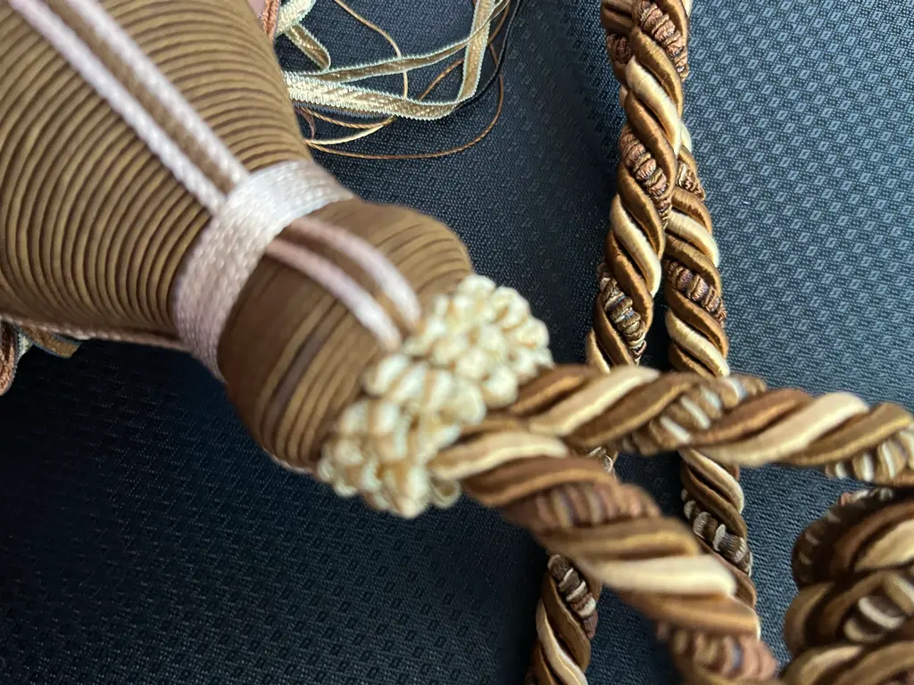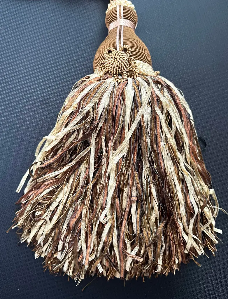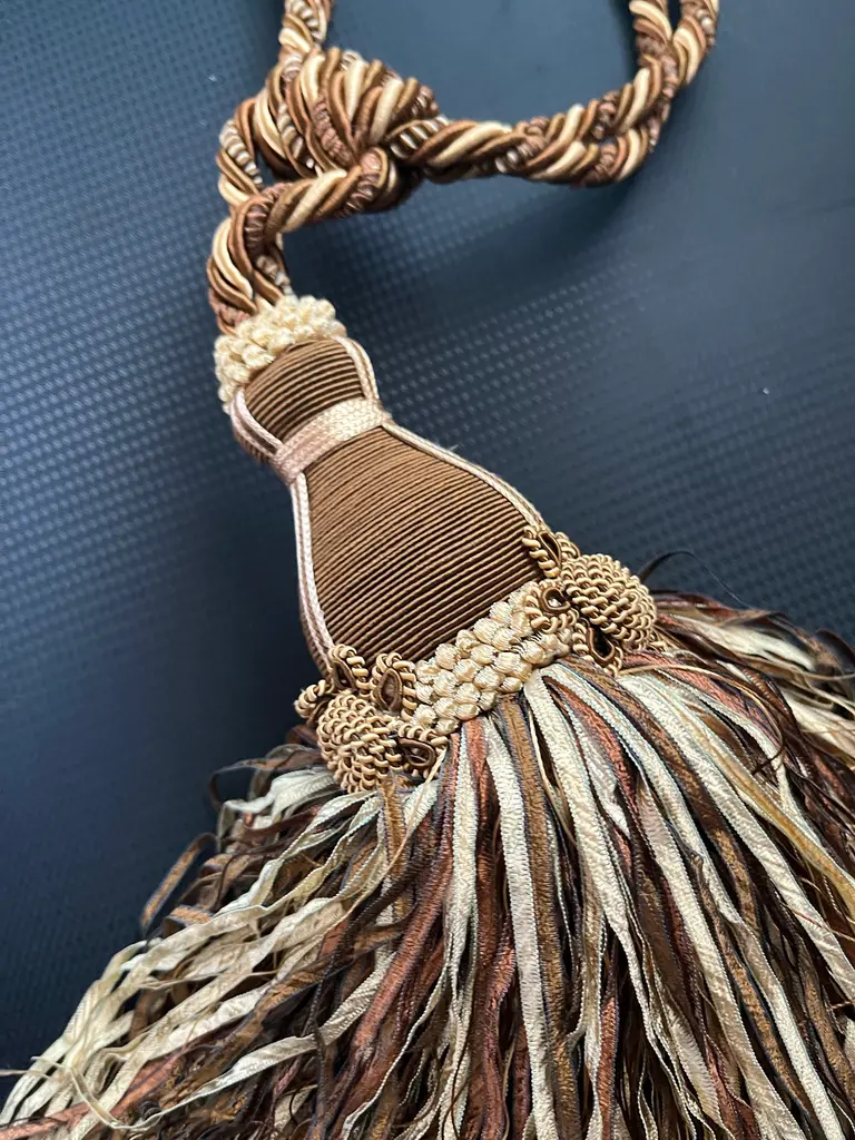 Huge 32.5” Luxury Brown And Goldtone Ribbon Tassel Curtain Tie - Back - 4 Pcs In Stock, Price For One
