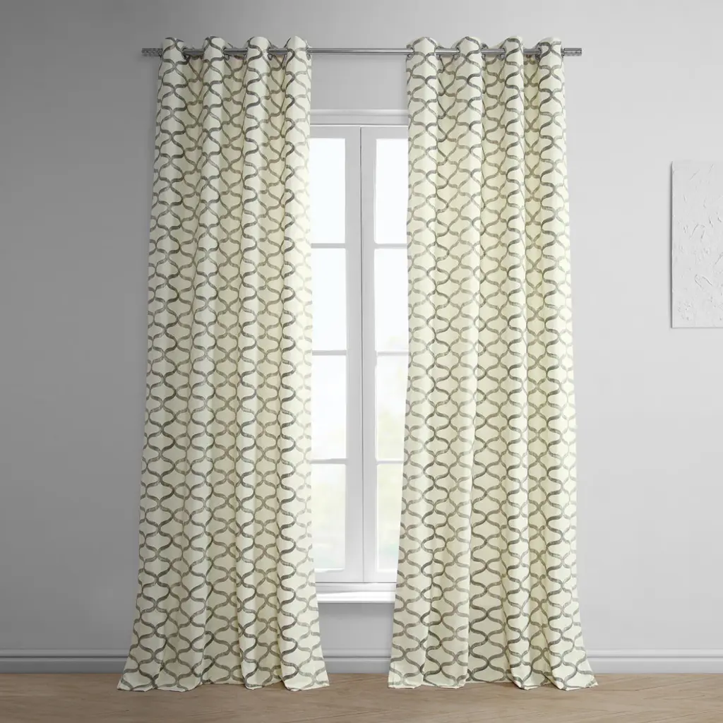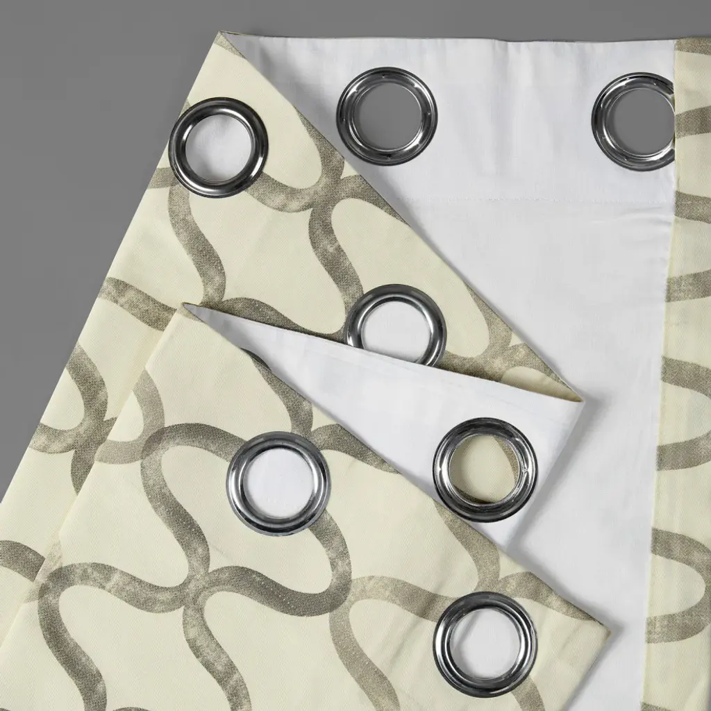 Illusions Silver Grey Grommet Printed Cotton Curtain Single Panel, 50"x120"