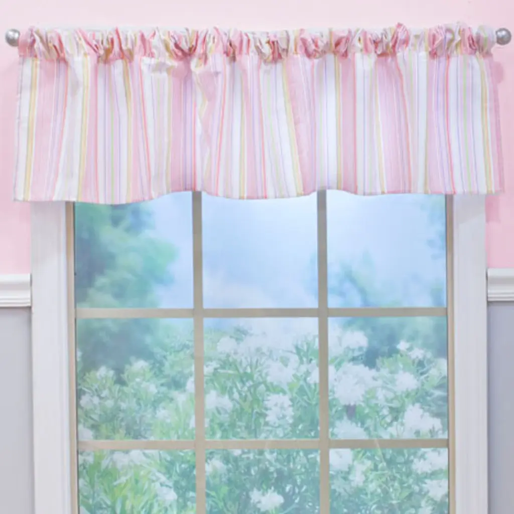 Decorate your nursery with the colorful Crazy Daisy Pink Stripe Valance. Designed to coordinate with other Nurture Imagination bedding and décor (sold separately), this valance makes a lively addition to a little one''s bedroom. This mix and match-able window valance is a shirred printed stripe on cotton twill. Valance is 100 percent cotton twill and measures approximately 14 inches H x 50 inches W.