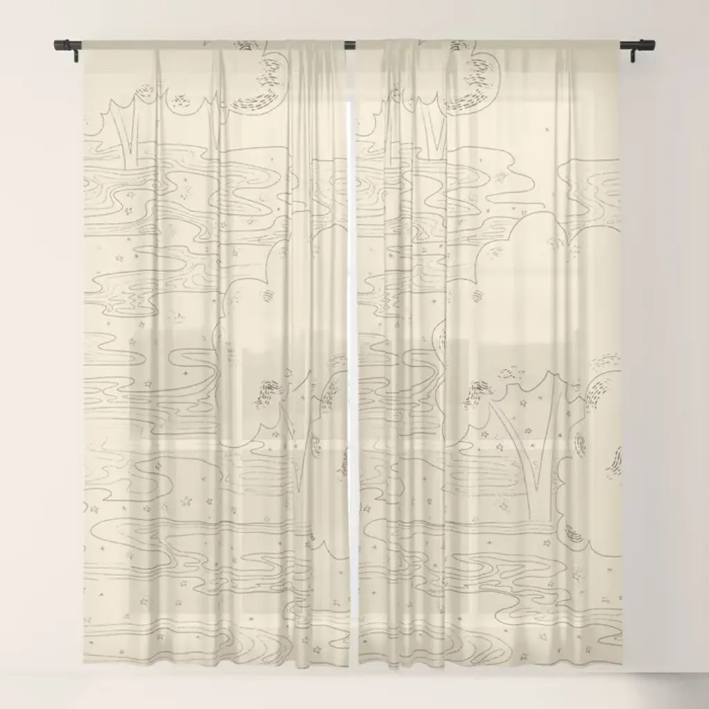 Blackout curtains are crafted with 100% woven polyester with a linen-like texture.Light-Filtering curtains are crafted with 100% mid-weight polyester.Sheer curtains are crafted with 100% lightweight polyester.Single sided print with white on reverse.Available in single or double panel options (double panels feature the same design on both).4" bottom pocket for easy hanging on any curtain rod (please note: artwork will appear upside down on non-patterned designs).Machine washable for easy care.Please note: Color variations may occur between on-site previews, your screen, and the printed fabric.Blackout, Light-Filtering, and Sheer Curtains are easy to care for:Machine wash cold.Use gentle cycle.Tumble dry low.SHIPPING: Items are made to order and typically ship within 3-4 business days. Click here for more information about delivery options.RETURNS: Return requests can be made within 30 days of your item(s) delivery. Click here for more information on returns.