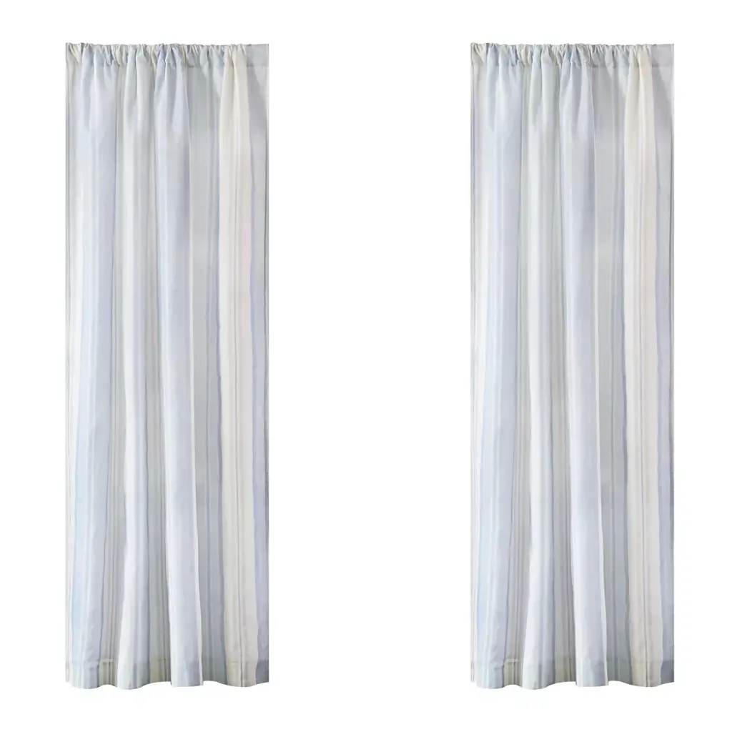 The Ipanema drape panel complements the Levtex Home Ipanema collection. This is the perfect accessory for any window Sized at 55x84in., this comes as a pair and features a Coastal Stripe - Blue, Taupe and Cream pattern. Made from 100% cotton, the Ipanema decorative curtains are easy to care for. These come with with a rod pocket ready for installation.