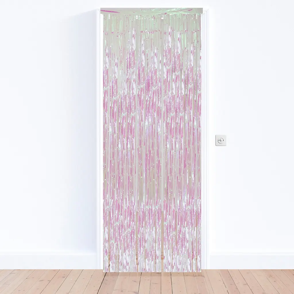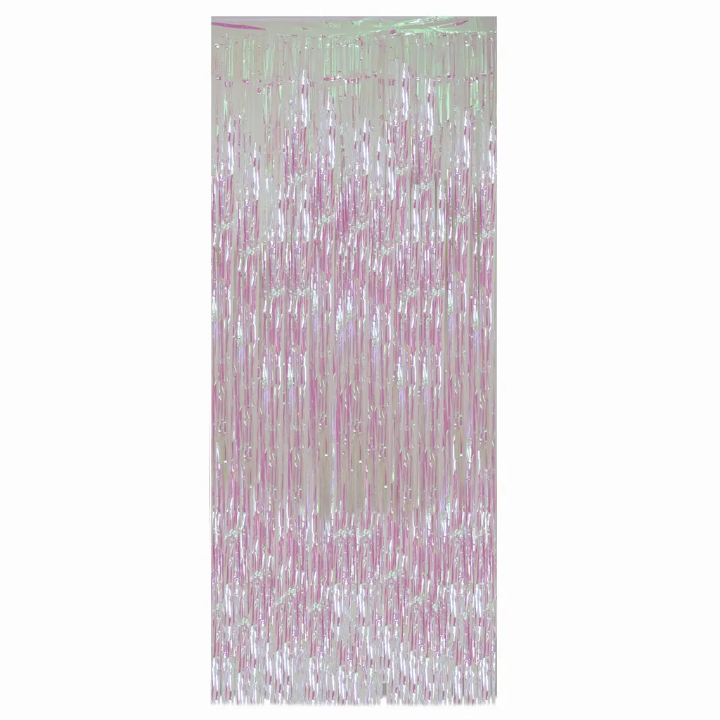 This shiny tinsel curtain is a great addition to your holiday decor birthday parties or as a backdrop for photos. The length can be adjusted by simply cutting the excess off making these usable in most places. Perfect to decorate doorways and walls. Product Features: Iridescent tinsel window and door curtain. Lightweight and durable. Easy to install with double-sided adhesive tape. Great prop for parties and backdrops. Recommended for indoor use; if using outdoors keep in covered area. Dimensions: 3' wide x 8' long. Material(s): foil