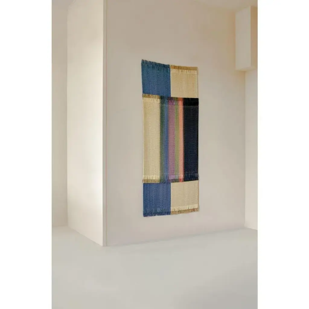 Ishoku perspective 01 by mae engelgeer limited edition of 5. Dimensions: d 0,5 x w 85 x h 180 cm. Materials: igusa straw. Ishoku perspective wall panels. Graphic compositions made by colores igusa straw creating perspectives. Inspired by the first tatami floor mats used in japan for tea ceremonies. Woven in japan in collaboration with mitsuru yokoyama and hand finished in amsterdam. Textile design has always been at the heart of dutch designer mae engelgeer’s work, from her high school days to her studies at the amsterdam fashion institute and sandberg instituut. Since opening her own studio in 2013, she has nurtured her curiosity for the craft, experimenting within the existing boundaries of textile production to elevate old techniques to a modern stage. Mae engelgeer’s work embraces subtle colour palettes, patterns and linear elements. Complex compositions merge with perfection to establish harmony. Creative explorations into the contrasting of materials and textures result in works that luxurious in their tactility and dimensionality. In addition to developing her own collections, mae engelgeer collaborates with brands around the world on projects ranging from textile products and furniture design to material explorations and art direction to large scale installations and public artworks. “my work is driven by intuition and the desire to create. While i consider myself to be a dreamer in the creation of new atmospheres, i am able to quickly translate those ideas into tangible works using the right textures, materials and colours. When asked for my vision in collaborations, i feel a certain sense of freedom to explore a multitude of possibilities.”.