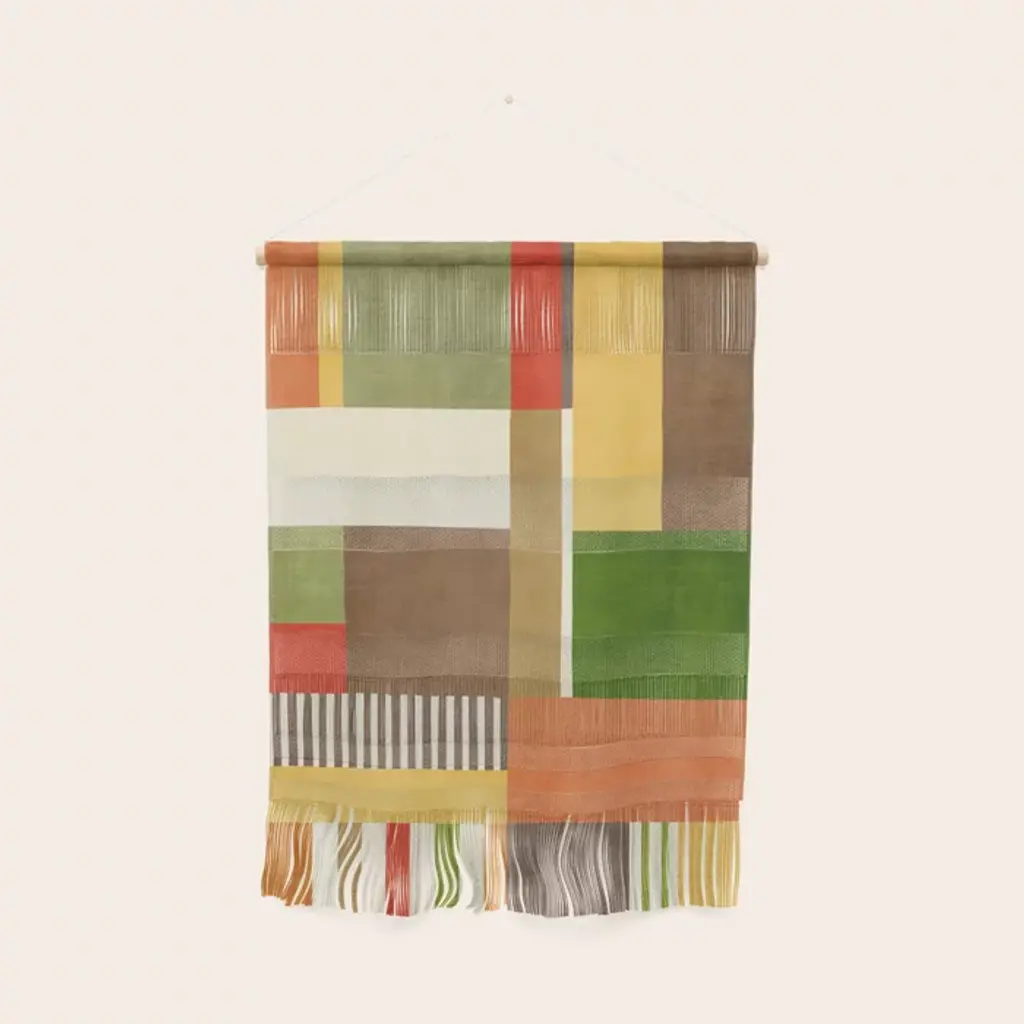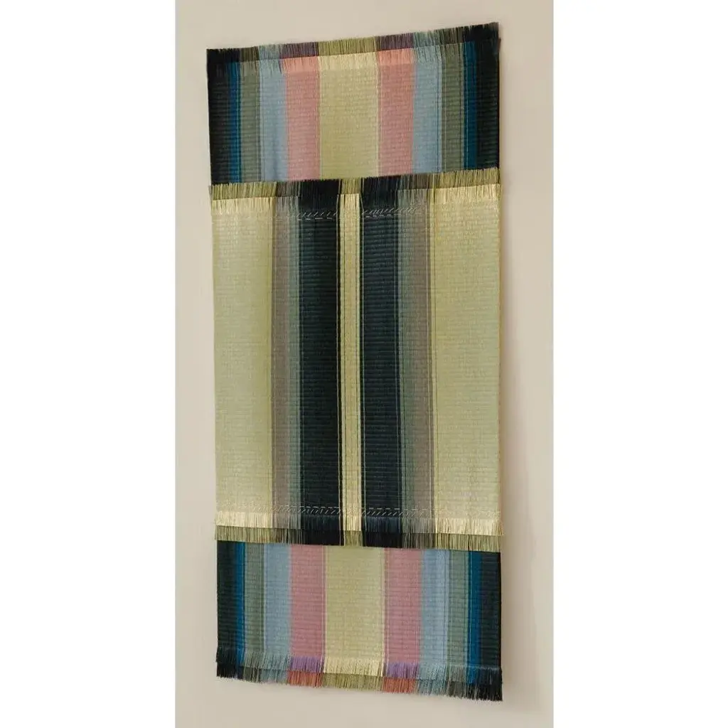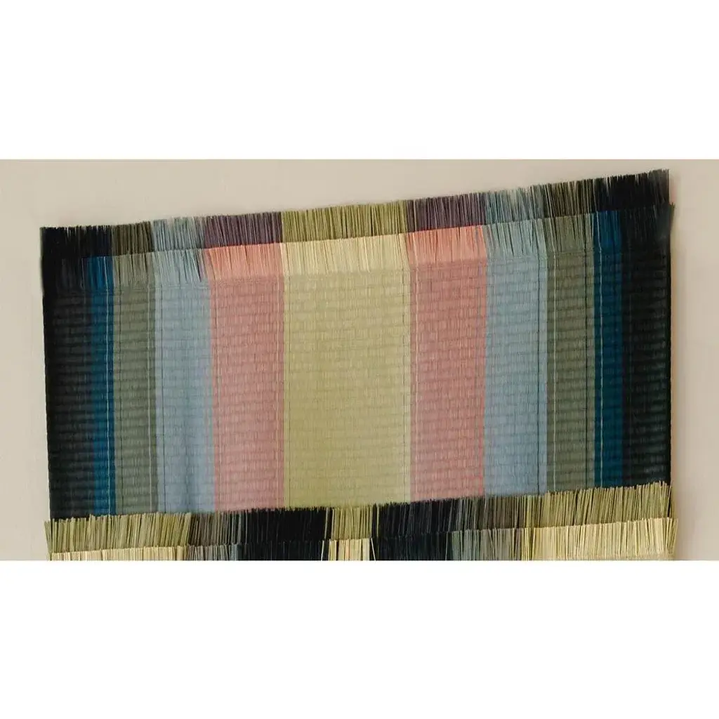 Ishoku Perspective 03 by Mae Engelgeer Limited edition of 5. Dimensions: D 0,5 x W 90 x H 190 cm. Materials: Igusa straw. Ishoku perspective wall panels. Graphic compositions made by colores igusa straw creating perspectives. Inspired by the first tatami floor mats used in Japan for tea ceremonies. Woven in Japan in colaboration with Mitsuru Yokoyama and hand finished in Amsterdam.