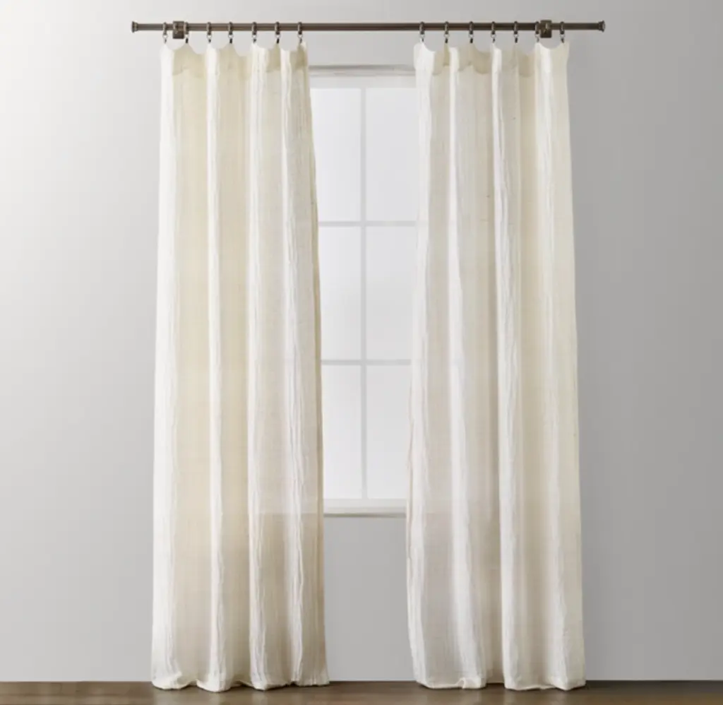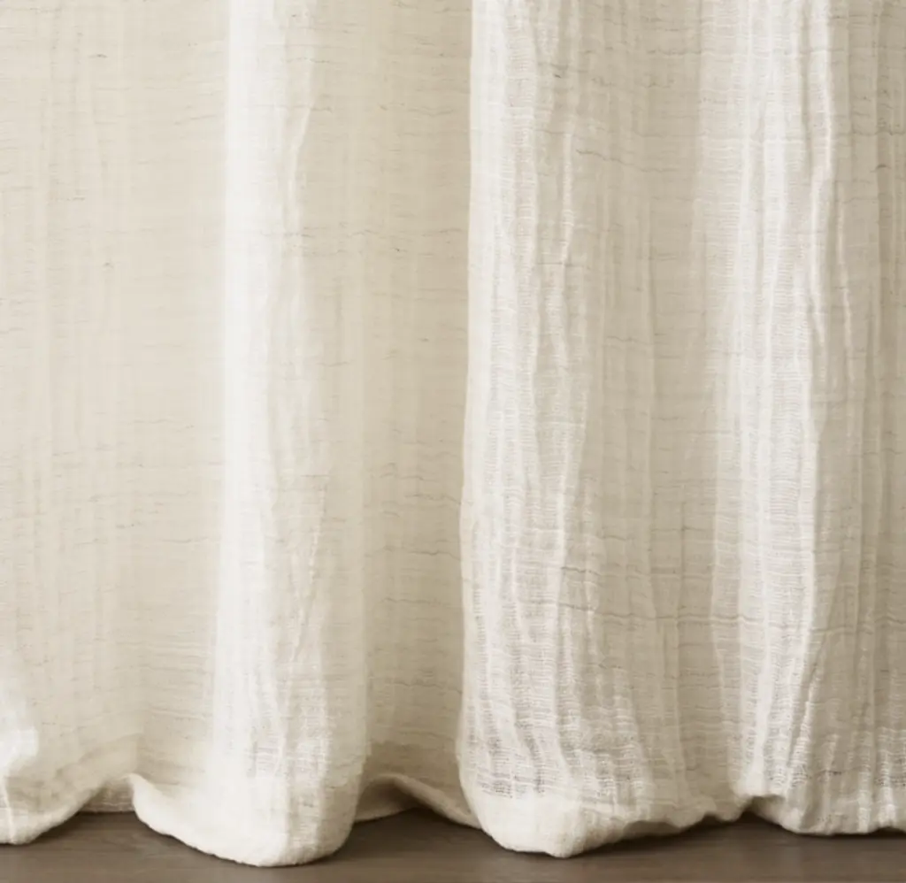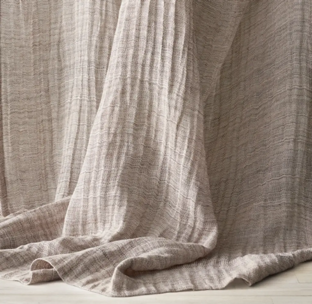 FREE SHIPPINGAn Italian mill creates our gauze drapery from variegated linen yarns that are spun and washed for a soft hand. The result is a layering panel with the relaxed appeal of a crossweave and the light-filtering quality of a delicate, airy sheer.