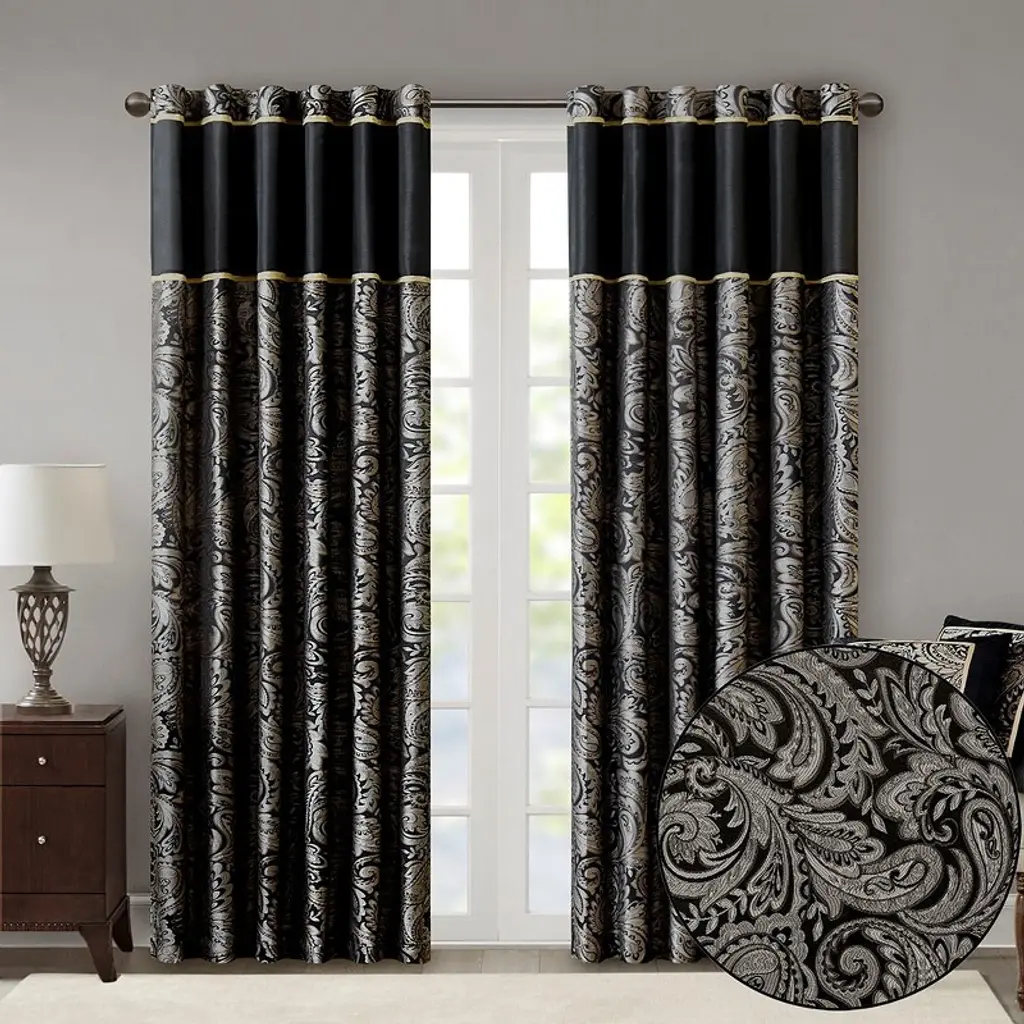 Description For a luxuriously classic style, our Madison Park Aubrey Window Curtain Pair is the perfect touch to your decor. The alluring jacquard weave is inspired from an updated paisley motif and is woven in beautiful hues of navy, ivory, and a hint of silver for a shimmering accent. The window panels are pieced with solid faux silk and beautiful flat piping details in gold, creating an elegant look. While also achieving the OEKO-TEX certification, meaning it does not contain any harmful substances or chemicals, ensuring quality comfort and wellness. Rod pocket or back tabs top finish makes this curtain easy to hang, open, and close panels throughout the day; while fitting up to a standard 1.25in diameter rod. Coordinating bedding is also available and sold separately. Product Details 50x95in 2 Window Panels:50inW x 95inL (2) Material 100% polyester, rod pocket and back tabs