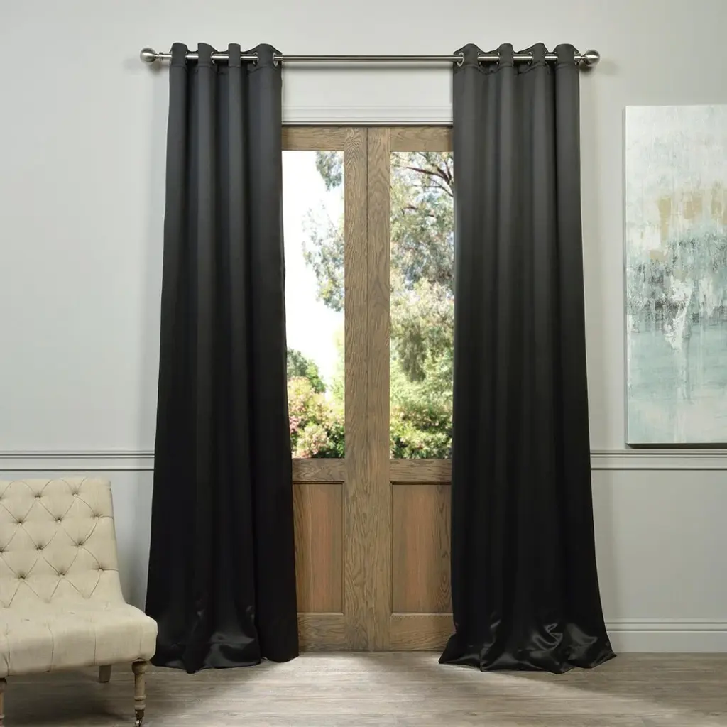 Jet Black Grommet Room Darkening Curtain, Set Of 2, 50"x96"
