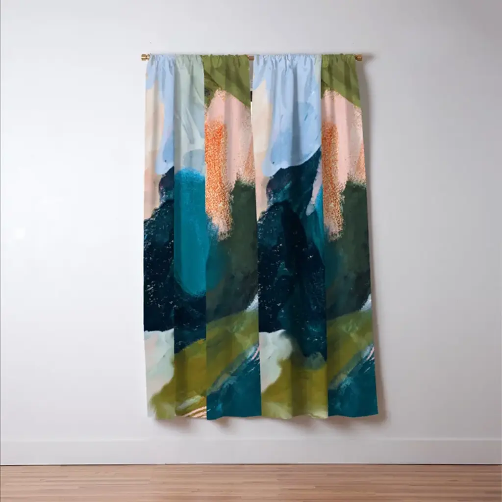 Blackout curtains are crafted with 100% woven polyester with a linen-like texture.Light-Filtering curtains are crafted with 100% mid-weight polyester.Sheer curtains are crafted with 100% lightweight polyester.Single sided print with white on reverse.Available in single or double panel options (double panels feature the same design on both).4" bottom pocket for easy hanging on any curtain rod (please note: artwork will appear upside down on non-patterned designs).Machine washable for easy care.Please note: Color variations may occur between on-site previews, your screen, and the printed fabric.Blackout, Light-Filtering, and Sheer Curtains are easy to care for:Machine wash cold.Use gentle cycle.Tumble dry low.SHIPPING: Items are made to order and typically ship within 3-4 business days. Click here for more information about delivery options.RETURNS: Return requests can be made within 30 days of your item(s) delivery. Click here for more information on returns.