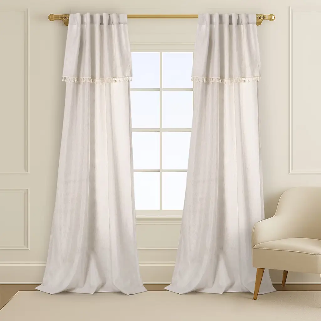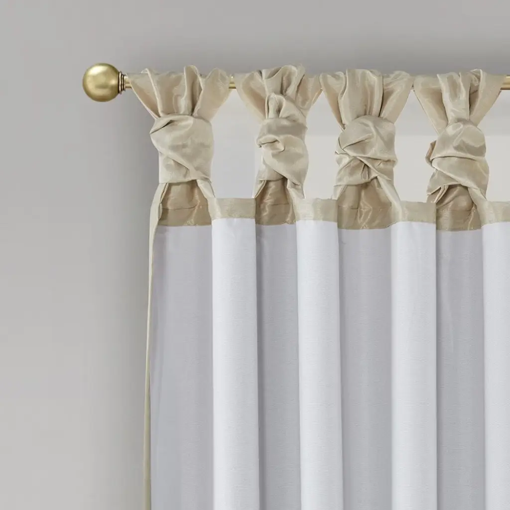 Enhance your space with the sophisticated style and full functionality of this twist tab top total blackout curtain panel. Made with a luxe faux silk base and a 3-pass foamback lining, it offers 100% light blockage and noise reduction—perfect for bedrooms, media rooms, or any space requiring ultimate privacy. The DIY twist tab top adds an elegant decorative touch while fitting rods up to 2" in diameter. Thermal technology helps regulate room temperature year-round, making it highly energy-efficient. Each panel measures 50" x 95", and two panels are recommended per standard window. Machine washable for effortless maintenance, this curtain blends fashion and practicality seamlessly.