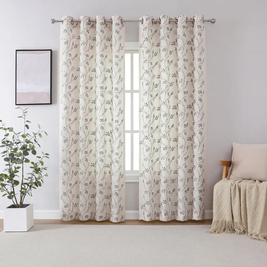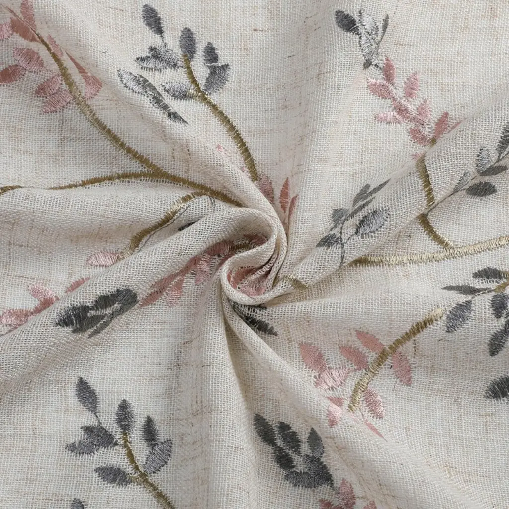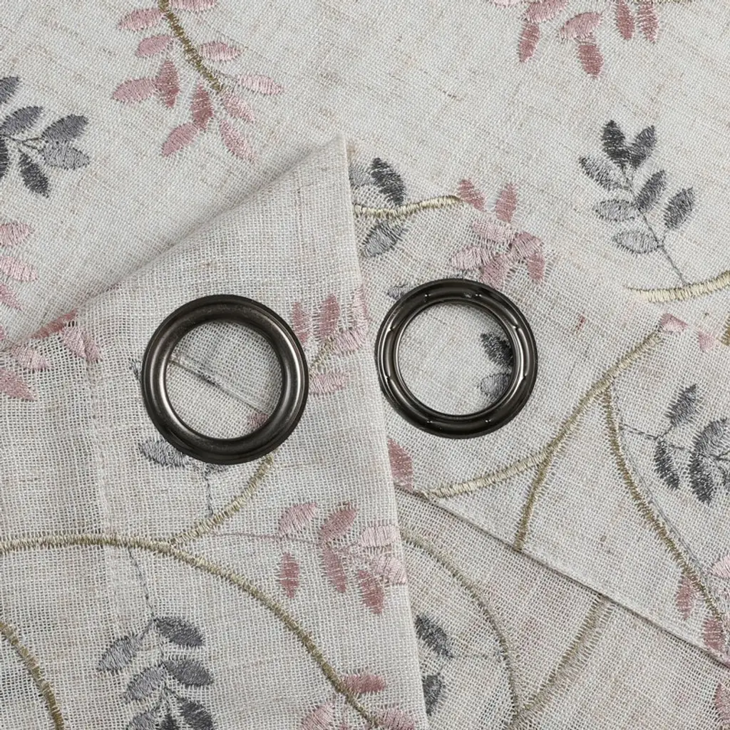 Kate Aurora 1 Piece Vanessa Floral Embroidered Linen Blend Semi Sheer Grommet Window Curtain Panel - 84 In. Long - Rose