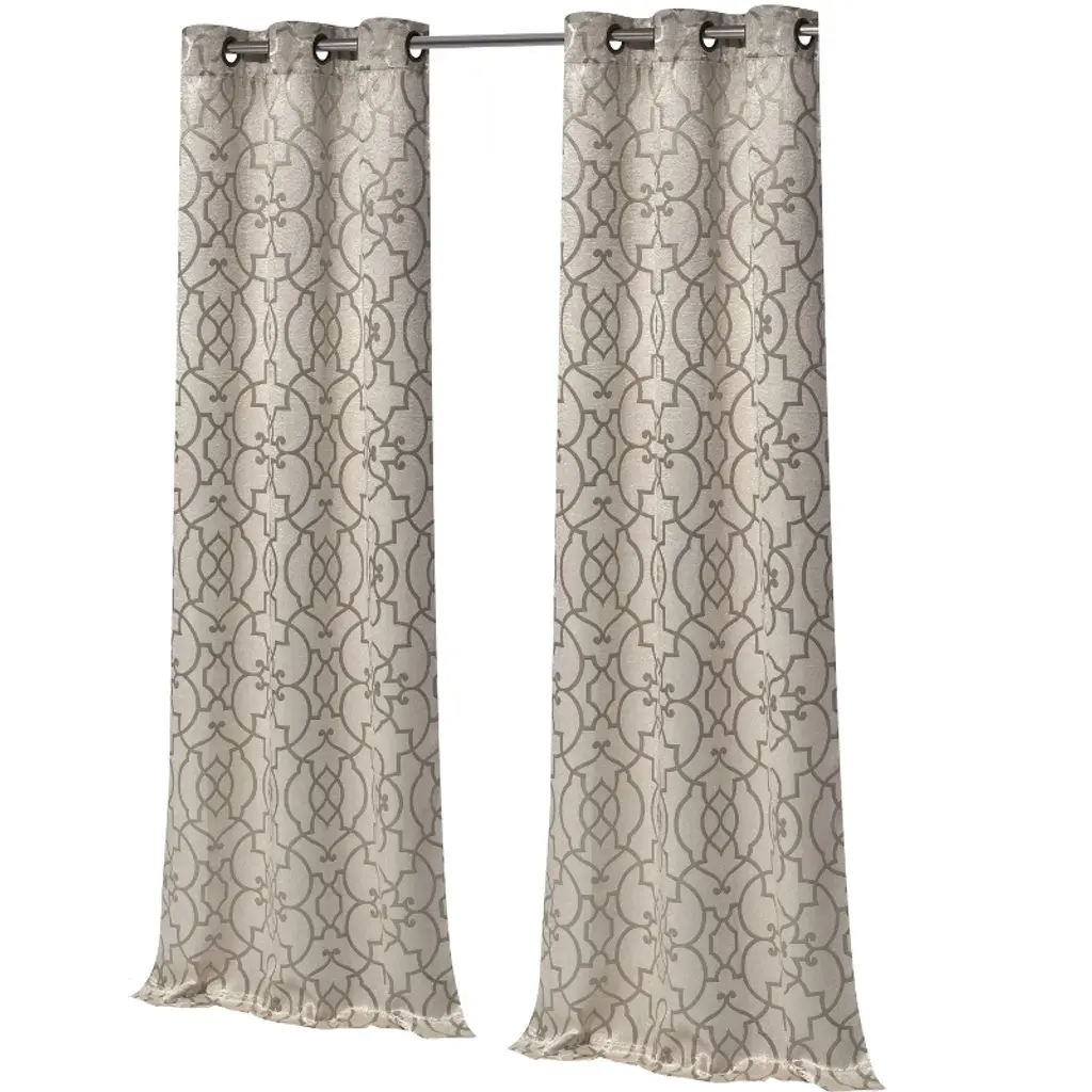 Kate Aurora 2 Piece Geo Sheen Palladian Grommet Top 88% Blackout Curtain Panels - 84 In. Long - Linen