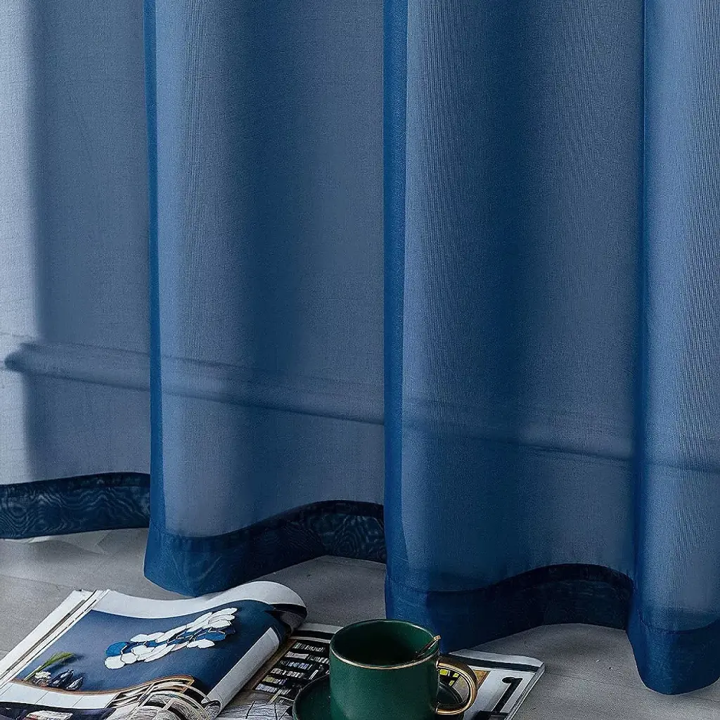 Kate Aurora Basic 2 Piece Navy Blue Lightweight Grommet Top Sheer Voile Window Curtain Panels - 84 In. Long