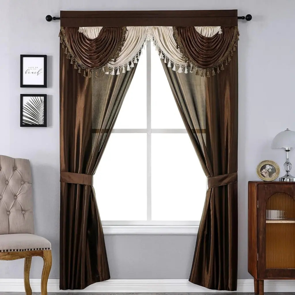 Kate Aurora Complete 5 Piece Sheer Window In A Bag Curtain & Valance Set - 52 In. W X 84 In. L, Brown