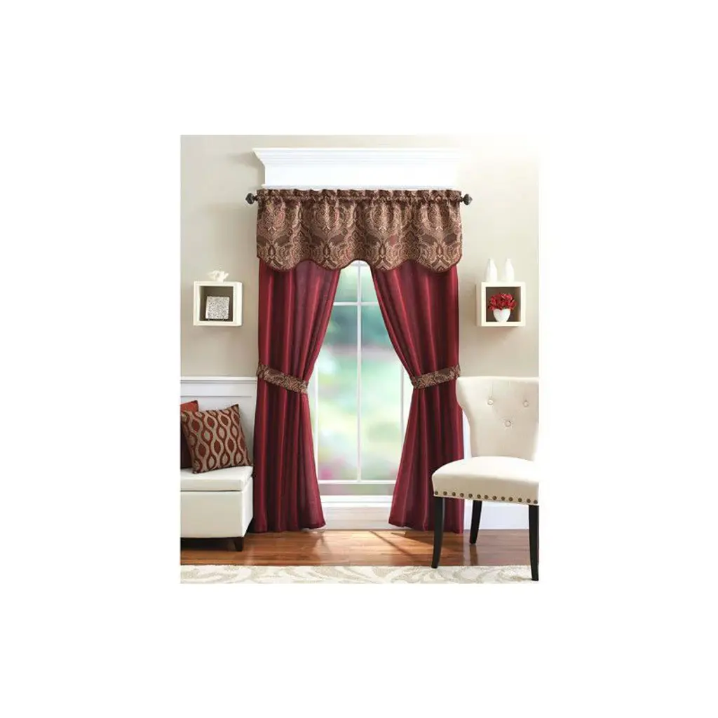 Kate Aurora Complete 5 Piece Sheer Window In A Bag Curtain & Valance Set - 52 In. W X 84 In. L, Burgundy/brick