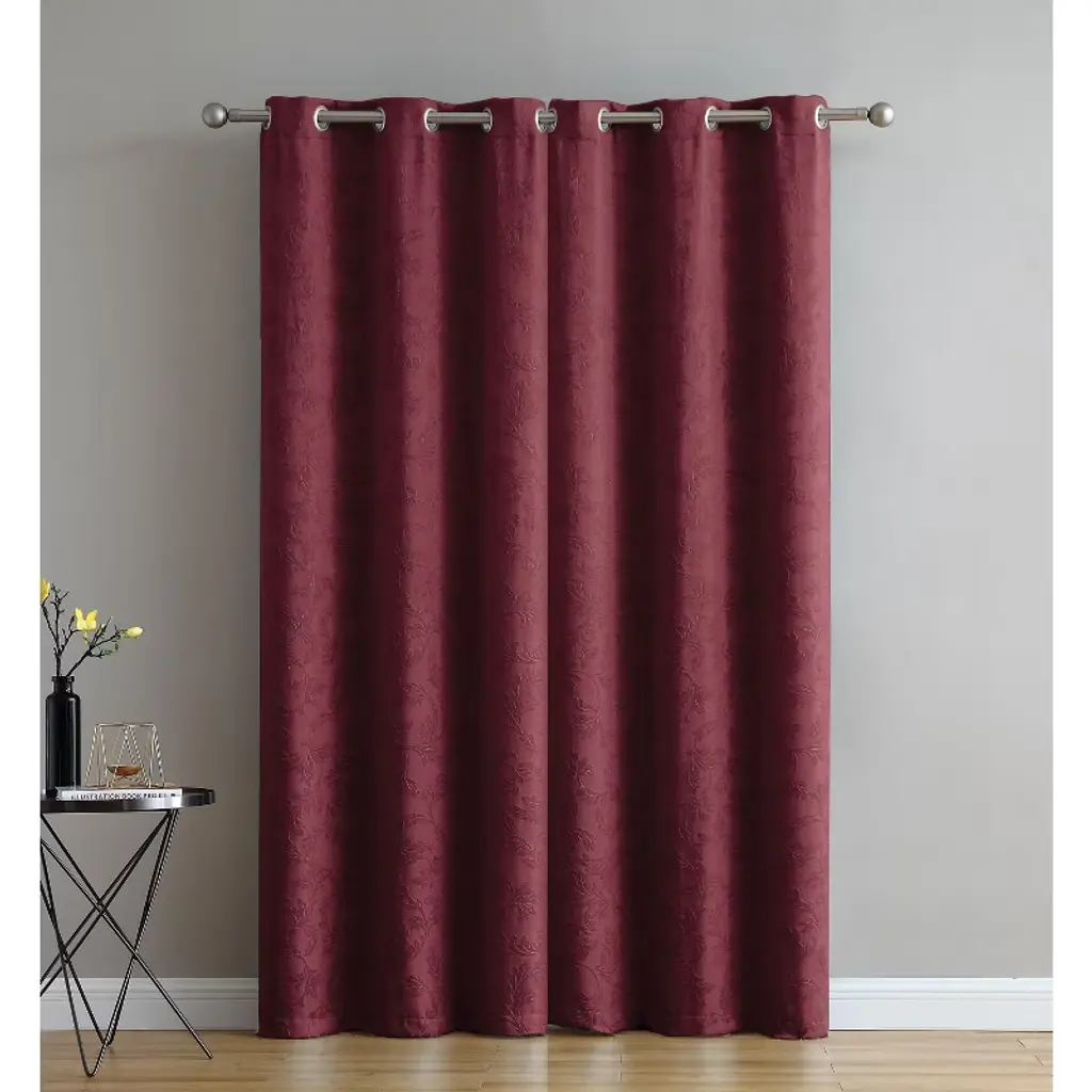 Kate Aurora Floral Embossed Room Darkening Grommet Top Curtain Panels - 38x84 - Wine