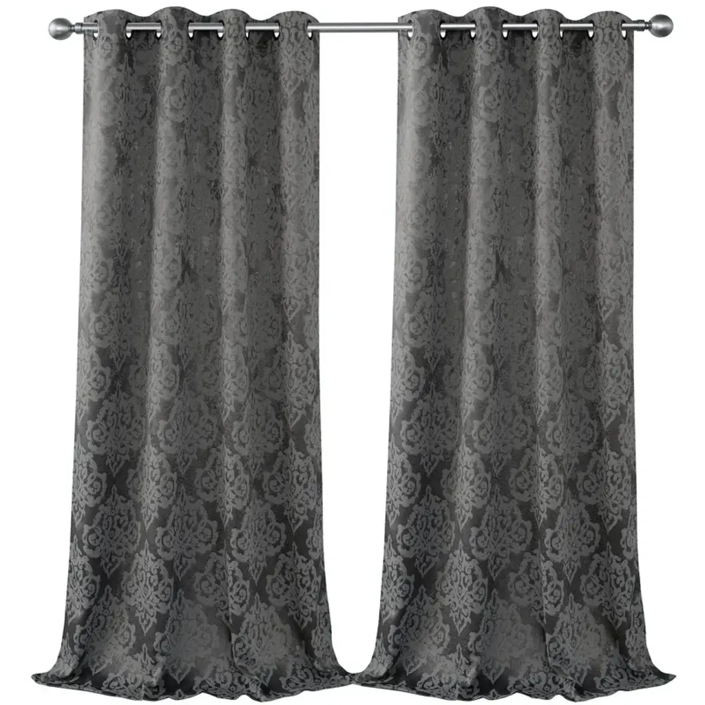 Kate Aurora Living 2 Pack Delaney Room Darkening Damask Print Grommet Curtain - 52 In. W X 84 In. L, Gray