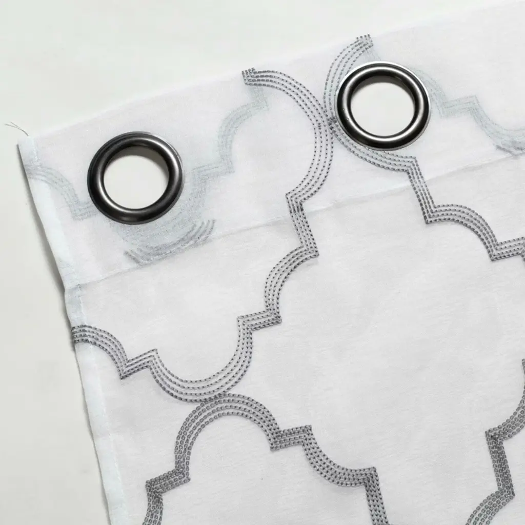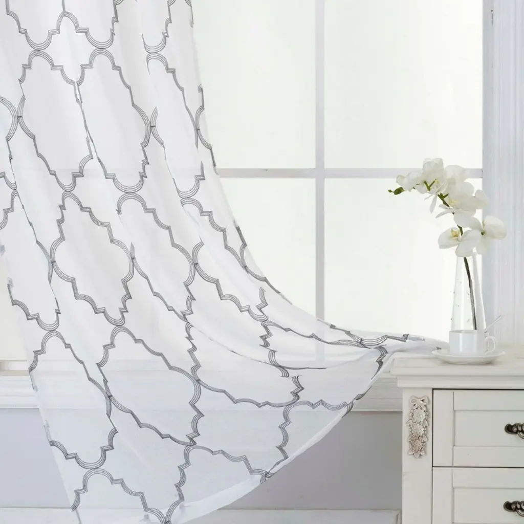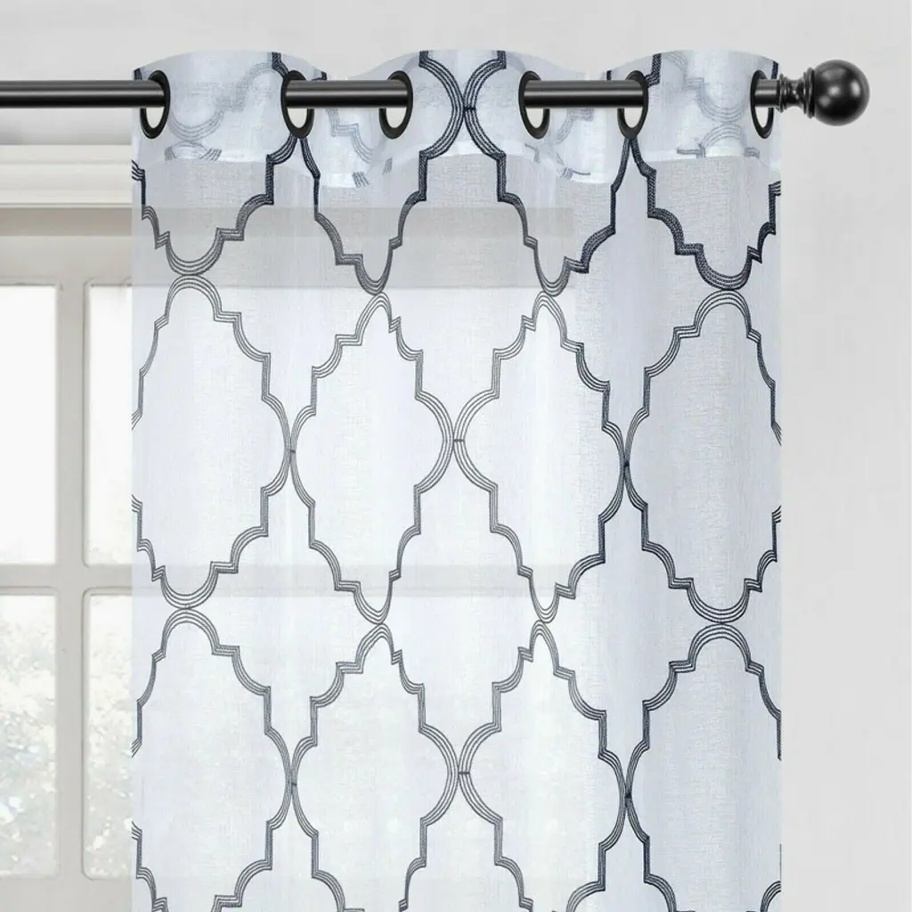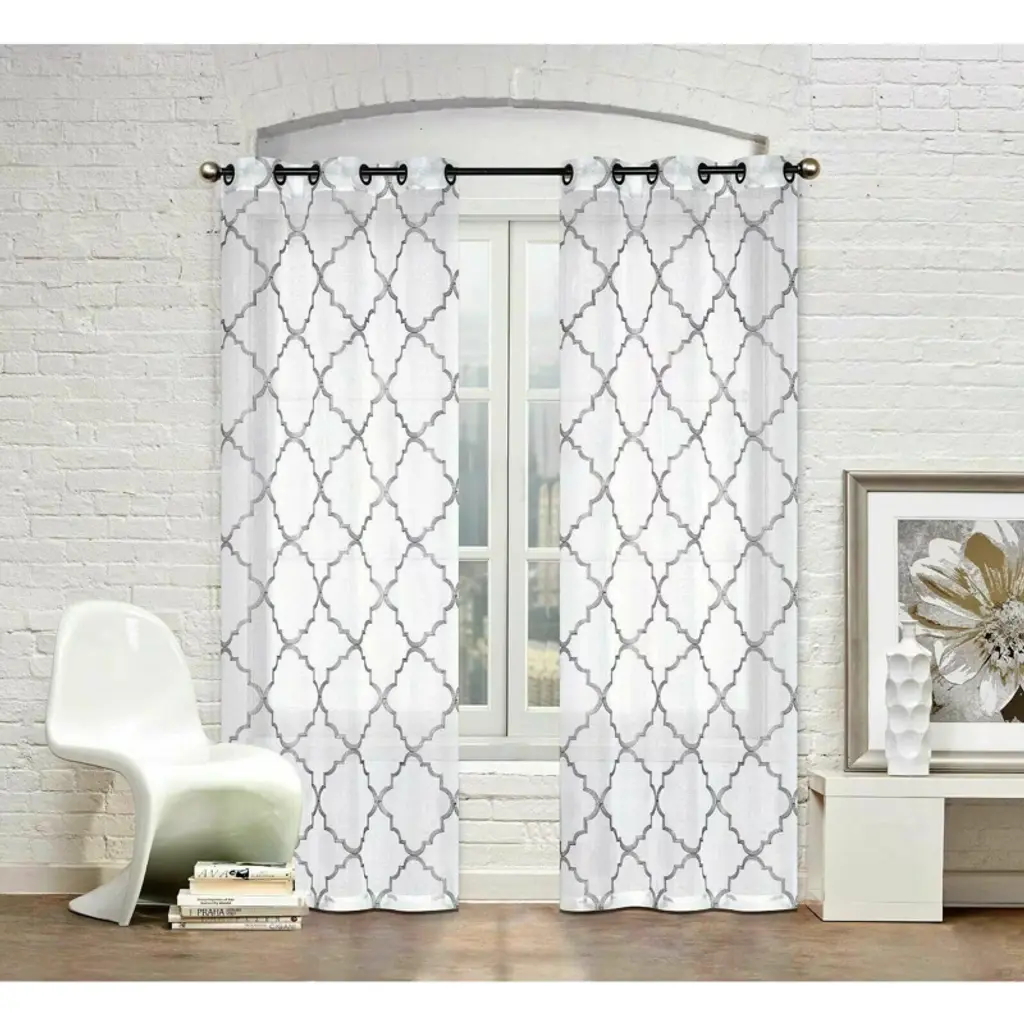 The Kate Aurora 2-pack geometric embroidery curtain is a perfect way to give your home a classy new style. The carefully embroidered trellis design provides a custom made look that can suit many different decor schemes. This elegant curtain comes in a set of two and is made of premium quality material. It is designed to filter light and provide privacy, while adding a touch of sophistication to any room. The geometric embroidery on this curtain is a unique and eye-catching feature that is sure to impress anyone who enters the room. The intricate design is carefully crafted to provide a seamless blend of style and functionality. The curtains are available in a range of colors and sizes to match any room decor. In addition to its elegant appearance, the Kate Aurora 2-pack geometric embroidery curtain is also easy to care for. Simply machine wash and tumble dry on low heat for hassle-free maintenance. These curtains are perfect for any room in your home, whether it be your living room, bedroom, or dining room. They add a touch of class and sophistication to any space, while providing the necessary privacy and light filtering that you need. With the Kate Aurora 2-pack geometric embroidery curtain, you can upgrade the look of your home without breaking the bank.
