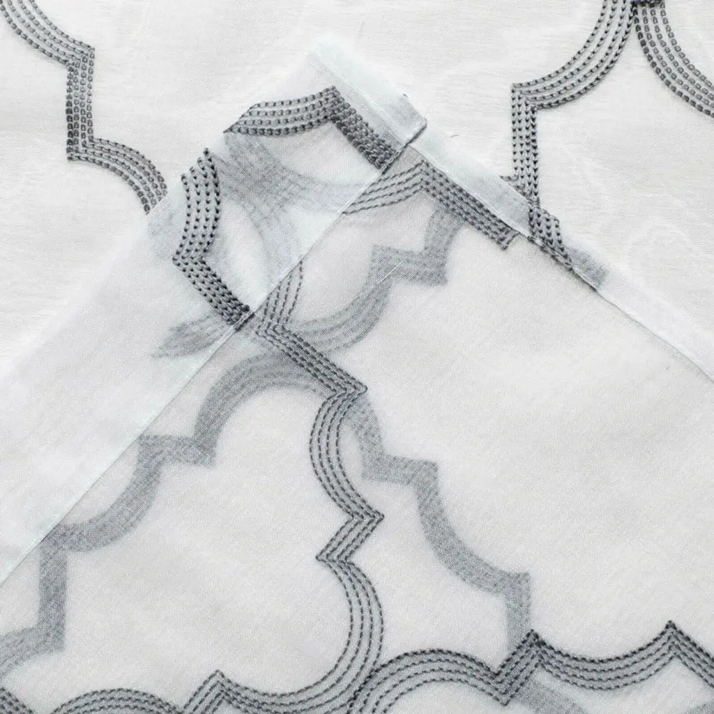 Kate Aurora Lux Home 2 Pack Shabby Trellis Semi Sheer Embroidered Clover Grommet Top Curtains - 38 In. W X 84 In. L, Gray