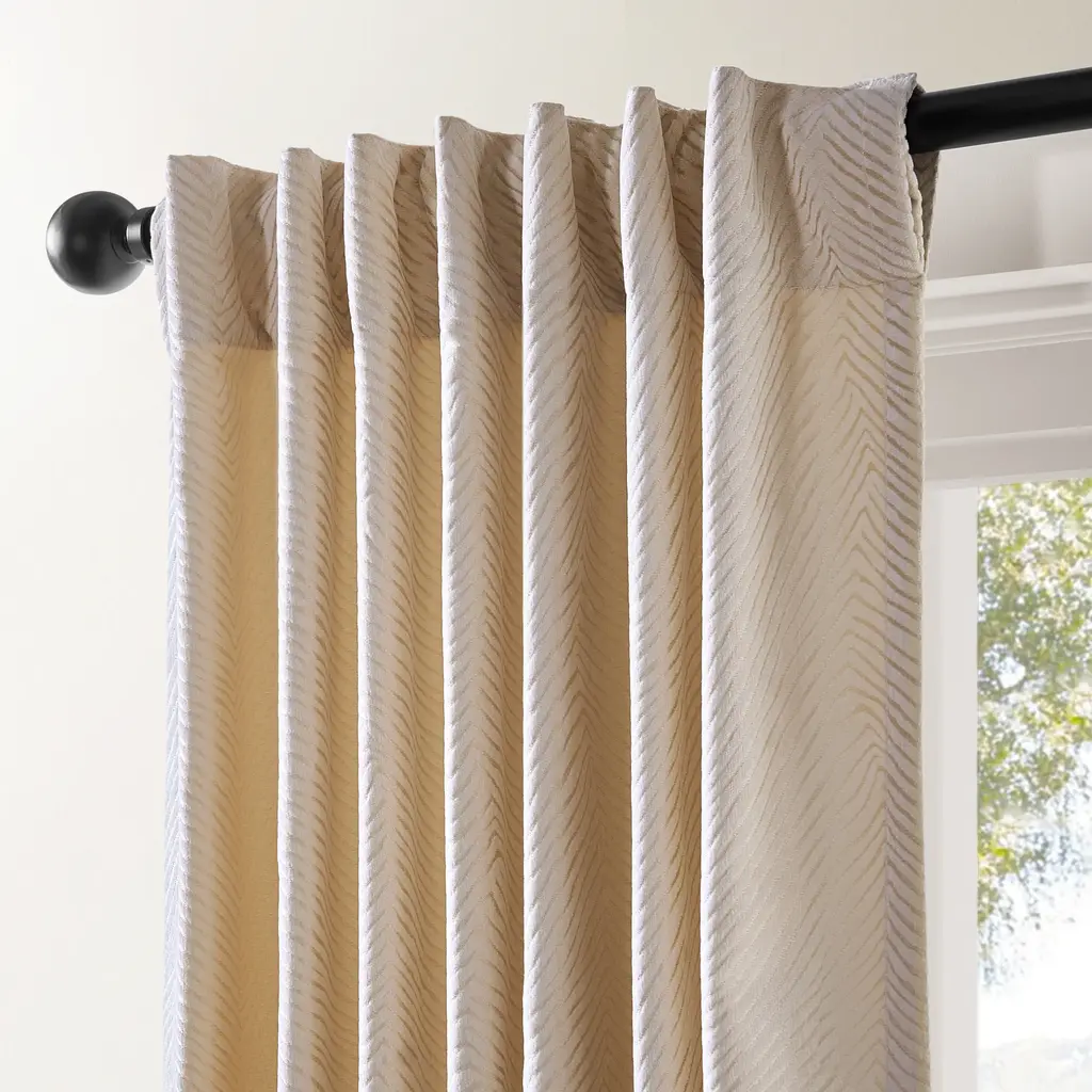 The Kenzo Curtain in beige redefines neutral with an elegant, high-contrast pattern and soft sheen. Crafted from luxurious chenille jacquard, this room-darkening Curtain diffuses light while making your space feel polished and serene. With its clean palette and versatile dual construction, it pairs effortlessly with minimalist, glam, or modern styles. A Z Gallerie exclusive, made to layer and elevate.ZG Exclusive