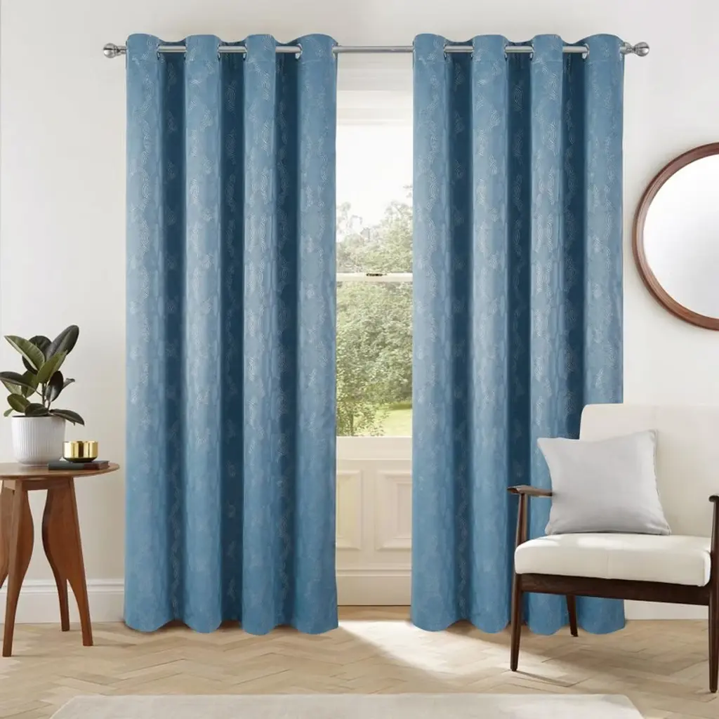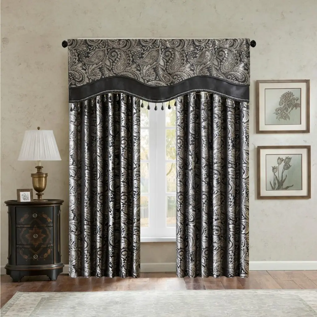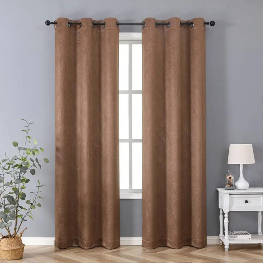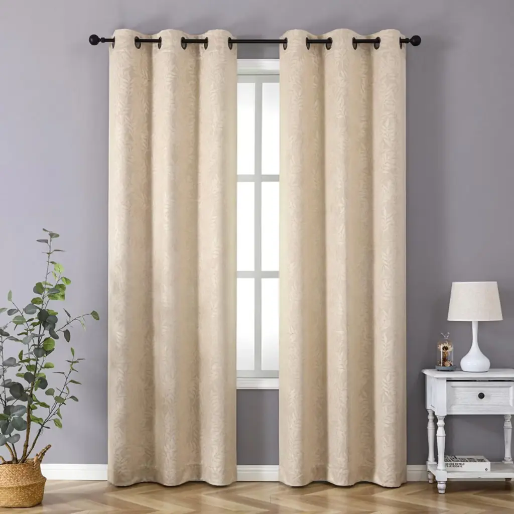 Knitted Jacquard Damask Total Blackout Grommet Top Curtain Panel(only 1 Pc Panel)