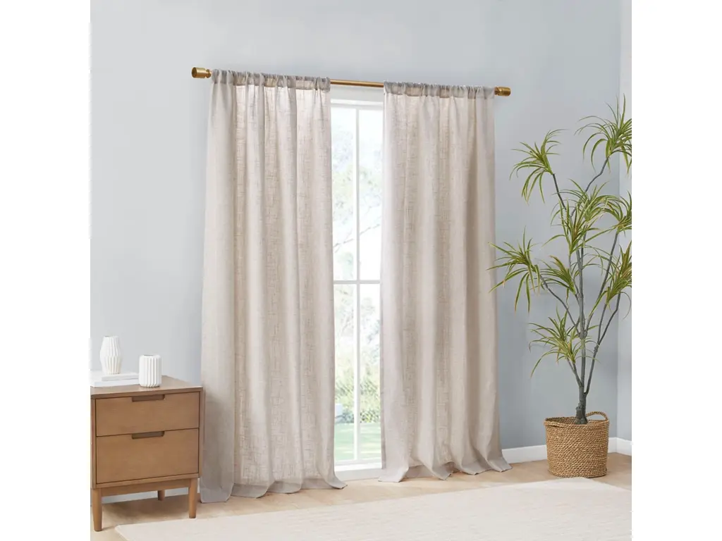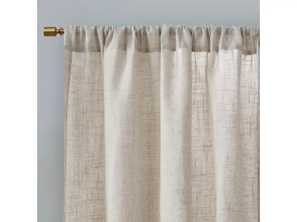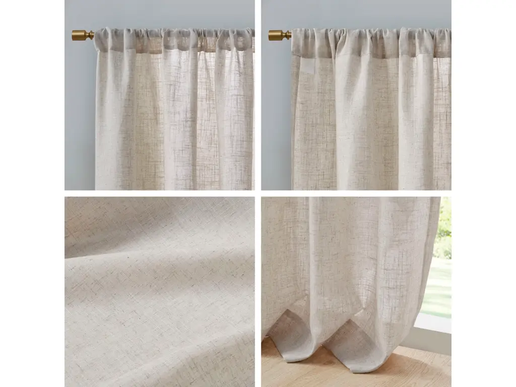 Casual and stylish, the Madison Park Kyler Linen Blend Light Filtering Window Panel Pair is an easy addition to freshen up any space. This window panel pair features a beautifully textured linen blend fabric in a soft natural tone creating a natural look and feel; while the lightweight fabric lets the right amount of light into your home for a bright, yet soft and airy touch. A rod pocket top makes these curtains easy to hang, open, and close throughout the day while the back tab option provides a more tailored and clean update; both top finishes fit up to a 3" diameter rod. Machine washable for easy care, this light filtering window panel pair is also OEKO-TEX certified, meaning it does not contain any harmful substances or chemicals to ensure quality comfort and wellness. Each panel comes as a pair for additional value that's ready to decorate your home; Complete the look with coordinating roman shades, available and sold separately.