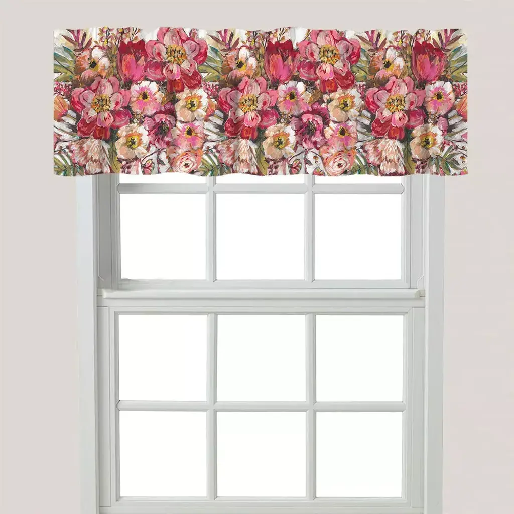 This floral inspired window valance, "Blue Bird Boho," features original artwork, hand painted on canvas. Detailed flowers, featuring a blue bird adds a whimsical look to your home. This vibrant multi-colored work of art will brighten up room while adding a touch of bohemian flair.