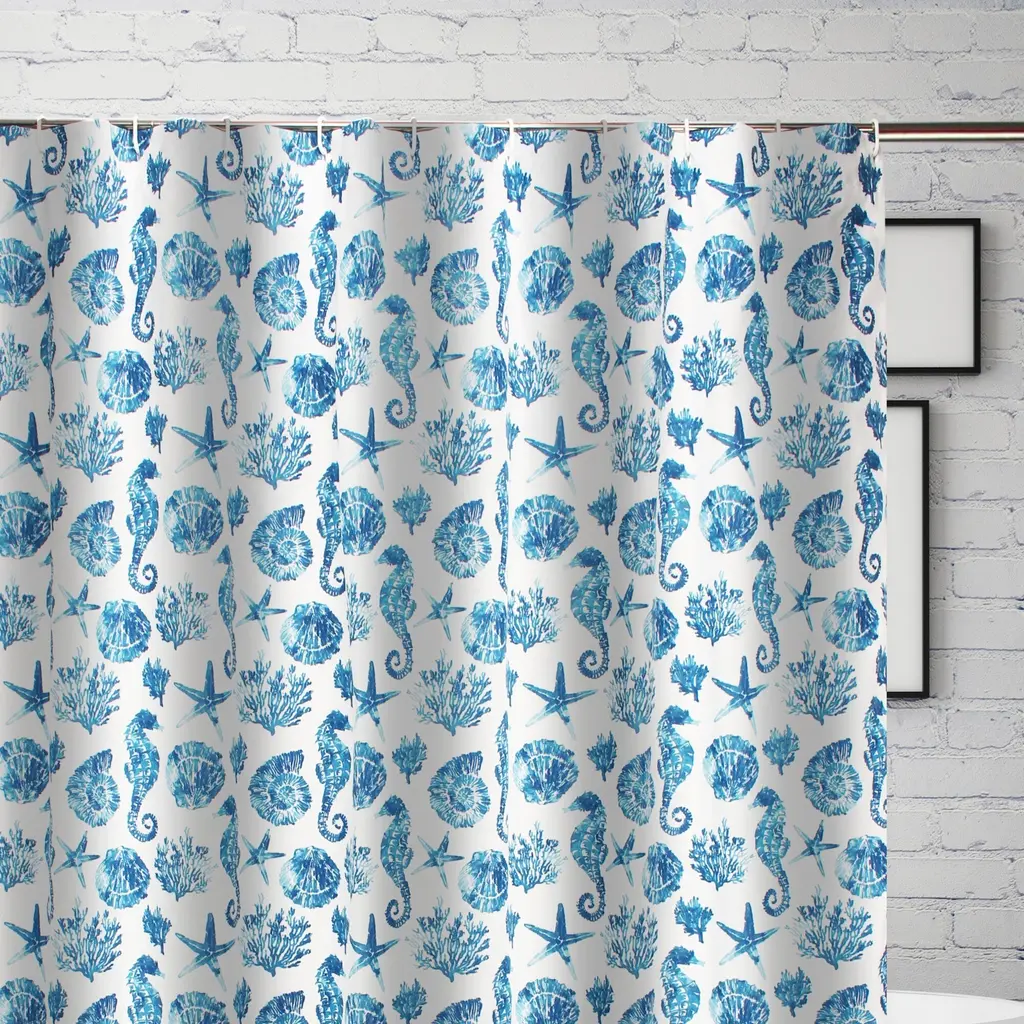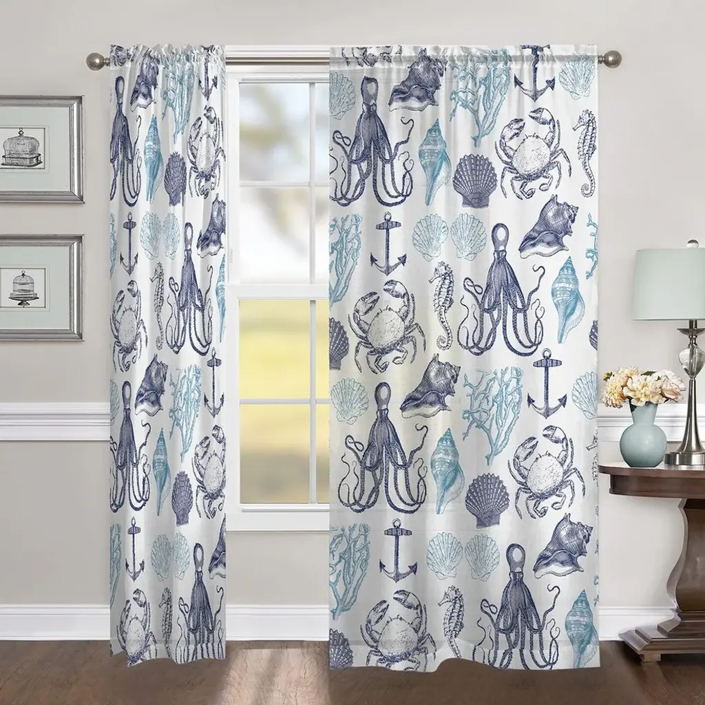Add a splash of sea life to your decor with Laural Home''s Navy Coastal Creatures sheer window curtain. This fun design features a pattern of finely detailed sea creatures, shells and plants found at the bottom of the ocean in serene coastal blue hues. Let light gently filter through this unique, art-inspired sheer window curtain to add style and elegance to your home. Sold individually. Machine washable.