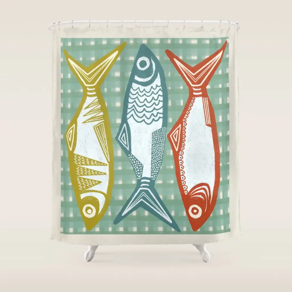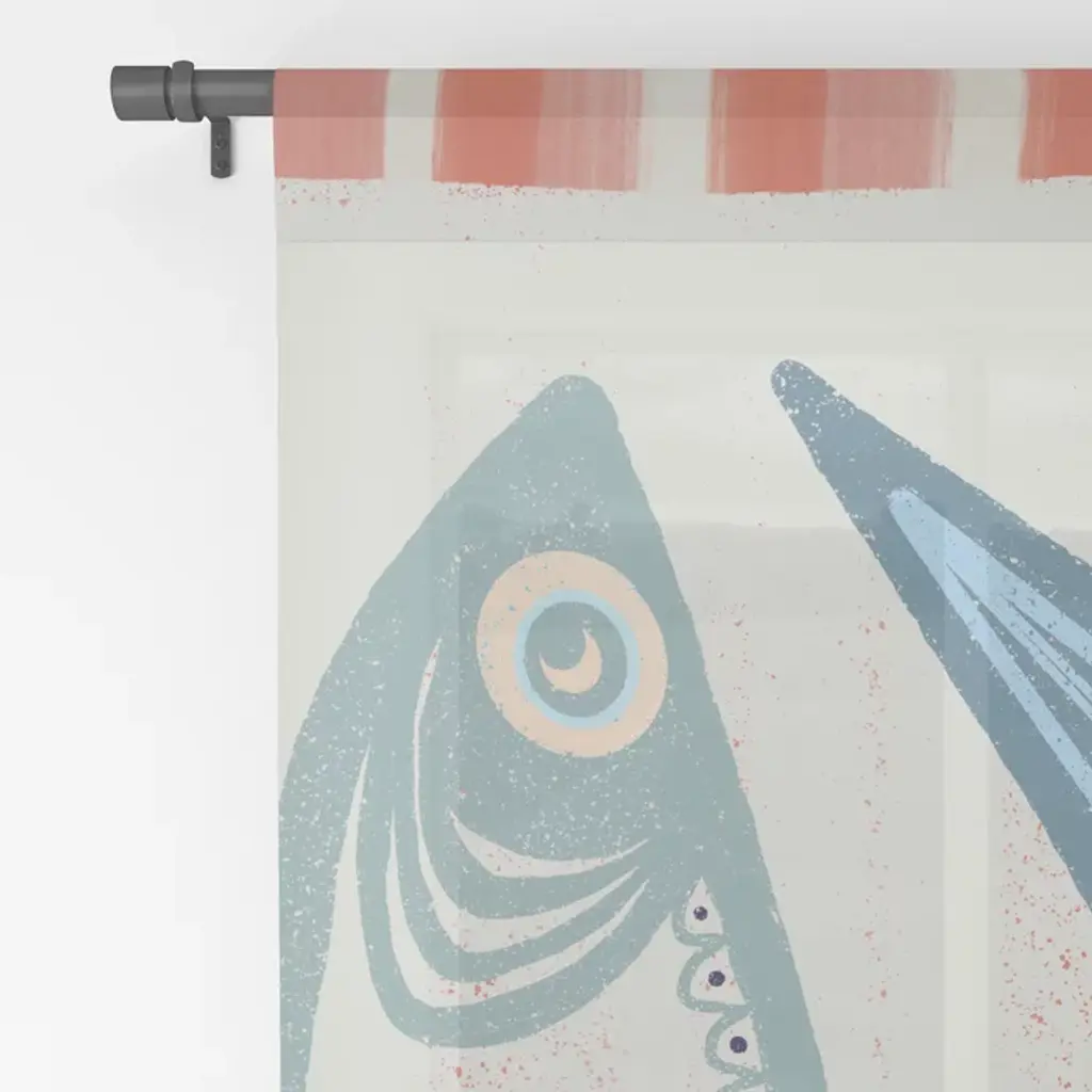 Le Sardine With Pink Stripes - Retro Art Print Curtain