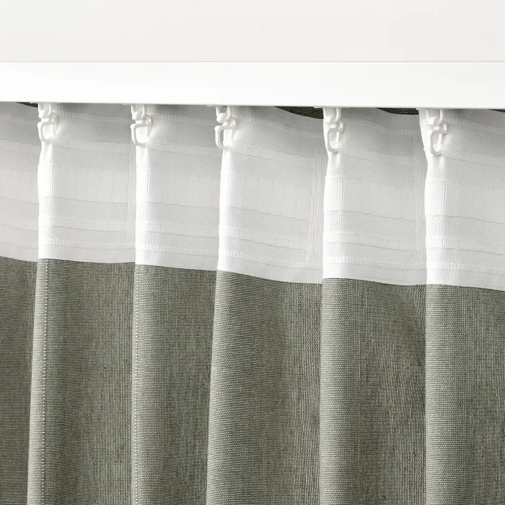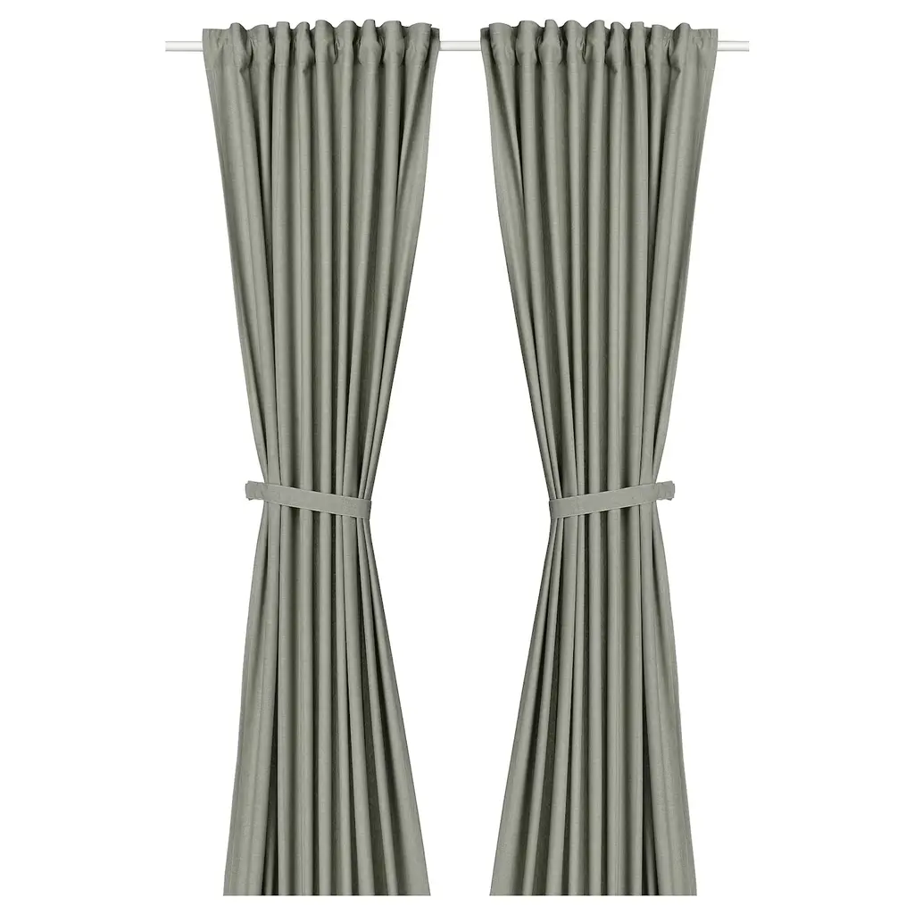 LENDA Curtains with tie-backs, 1 pair - with heading tape/light gray-green 55x98 ". Matching tiebacks enhance the fulness of the fabric and add a traditional and decorative accent to your window treatment. Adjust the height to create a look that best suits you. Curtains, 1 pair included