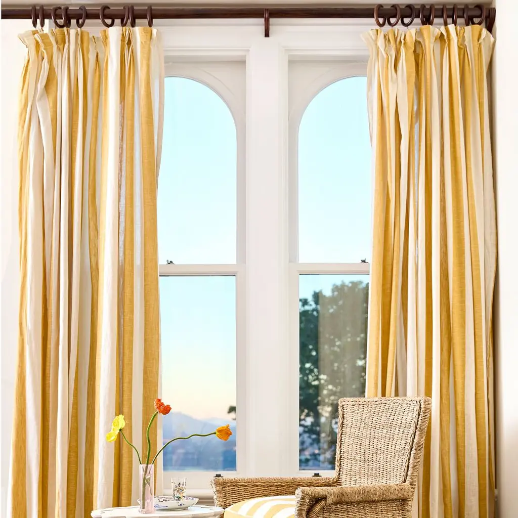 Try a new view. In a cotton/linen blend, these pleated curtains are OEKO-TEX® certified, extra-soft, and airy. A lightweight drape that’s colorful and casual.