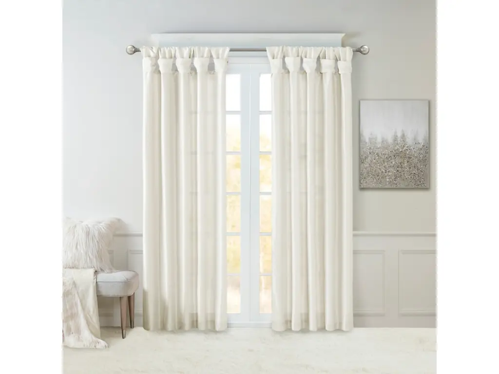 Give your home a decorator’s touch with the Madison Park Emilia Window Curtain. Made from a faux silk fabric, this elegant window curtain features a DIY twist tab top finish that creates rich, deep folds for a professional look. Added lining offers more privacy and a fuller appearance, while the luxurious sheen and rich white tone provides a touch of sophistication to your décor. Easy to hang, this tab top curtain turns any room into a gorgeous getaway. Hanging instructions are included. Fits up to a 2" diameter rod.