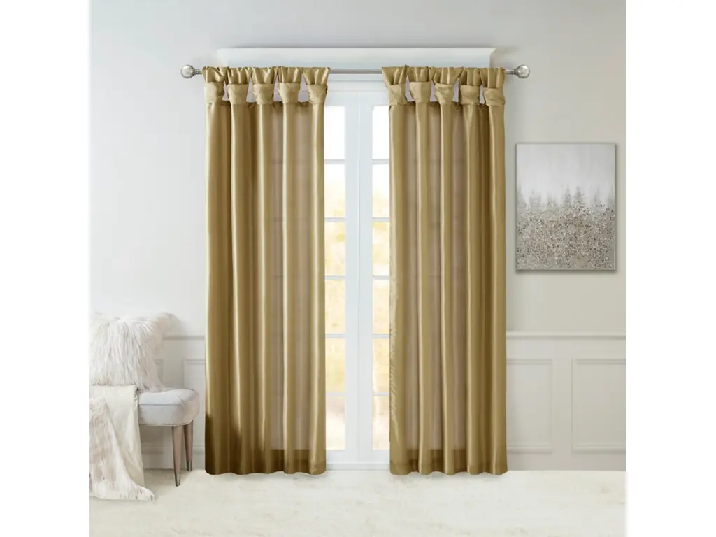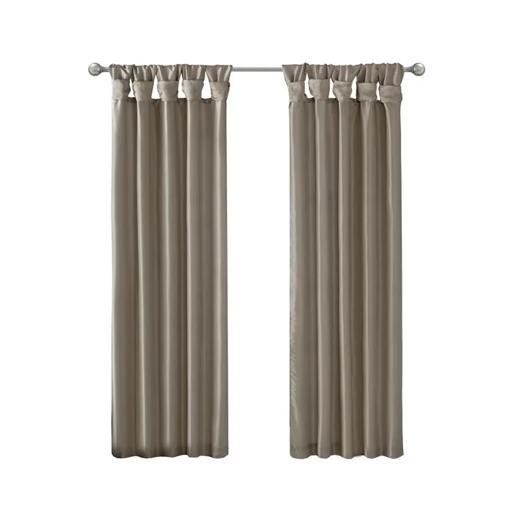 Give your home a decorator’s touch with the Madison Park Emilia Window Curtain. Made from a faux silk fabric, this elegant window curtain features a DIY twist tab top finish that creates rich, deep folds for a professional look. Added lining offers more privacy and a fuller appearance, while the luxurious sheen and rich taupe tone provides a touch of sophistication to your décor. Easy to hang, this tab top curtain turns any room into a gorgeous getaway. Hanging instructions are included. Fits up to a 2" diameter rod.