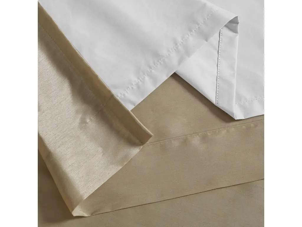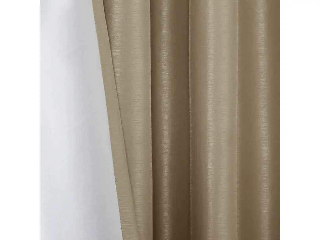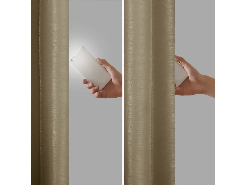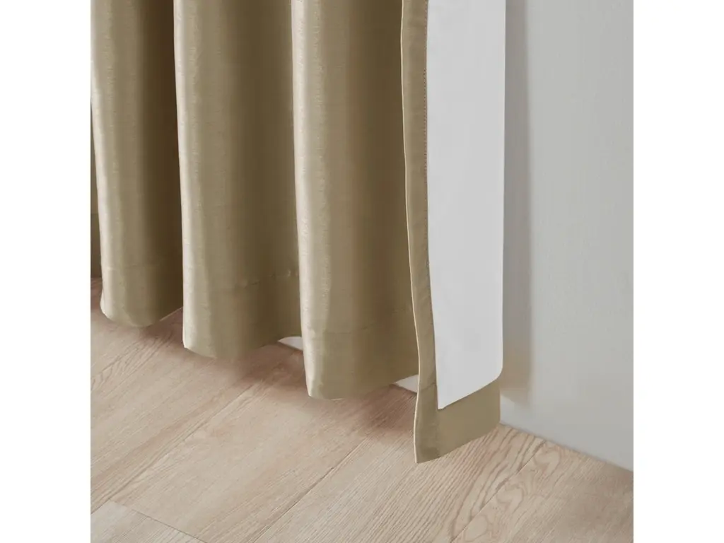Energy efficiency meets a sophisticate style with the Madison Park Emilia Twist Tab Total Blackout Window Curtain. This bronze window curtain panel showcases a DIY twist tab top finish that allows you to create an elegant display in your living room or bedroom space. The faux silk sheen base fabric features a 3 pass foamback liner on the reverse to block out all outside light, noise, and intrusion ensuring the highest level of privacy. Using thermal technology, the total blackout curtain helps provide maximum energy savings by keeping your room the perfect temperature through the seasons. While this window panel is also OEKO-TEX certified, meaning it does not contain any harmful substances or chemicals, ensuring quality comfort and wellness. This twist tab total blackout window panel is perfect for use in bedrooms, media rooms, or any private space. As shown in the image, two curtain panels need to be purchased for each window; Fits up to a 2" diameter rod.