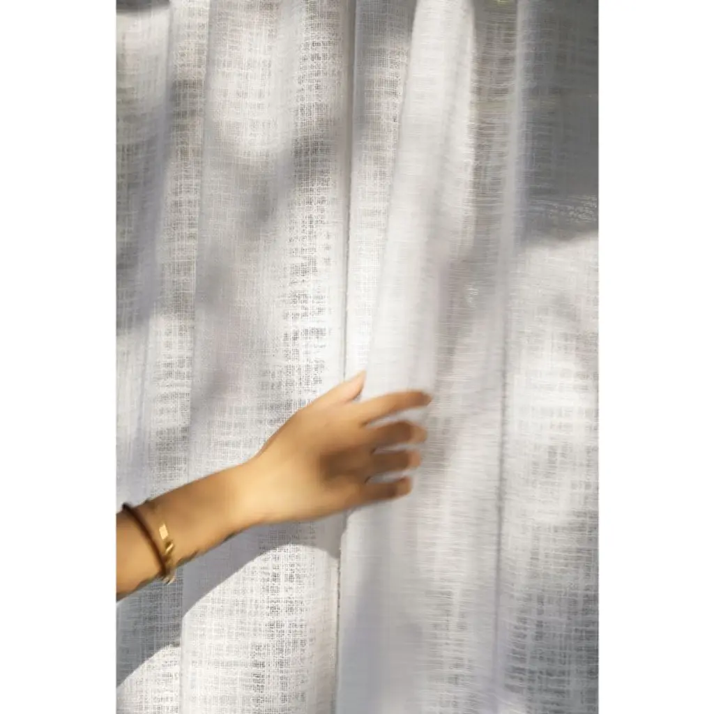 Our Lindstrom curtain panel offers simple elegance with uniquely crafted, three-dimensional texture. Thick and thin slubbed organic cotton yarns in crisp white are woven in a slightly open weave to create an all-over landscape of touchable texture. Sheer enough to filter light beautifully, the fabric hangs with a full-bodied drape. Suitable for any room in the house, the white curtain looks especially coordinated in the bedroom when combined with our Lindstrom bedding.Curtain hardware also available.Learn how to hang curtains in our guide.