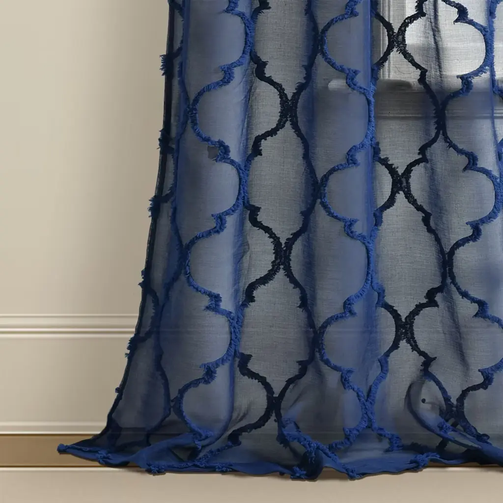 Lush Decor 38"x84" Set Of 2 Garden Trellis Grommet Sheer Window Curtain Panels Navy