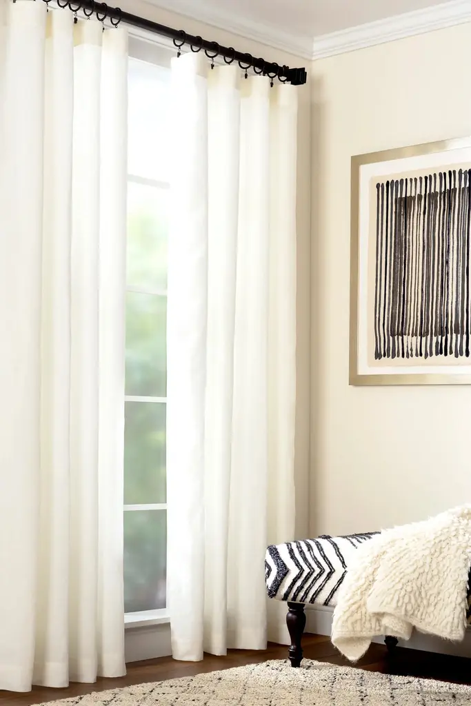 With a masculine marled weave and a sophisticated texture and drape, these simple curtain panels have a reliably urban feel that can add understated elegance to any setting. Comes readily sewn with rod pocket and loops for easy installation or converts to ring-top style with curtain clip or curtain loop rings, available separately. Remember to order two sets of rings for wider-width panels.