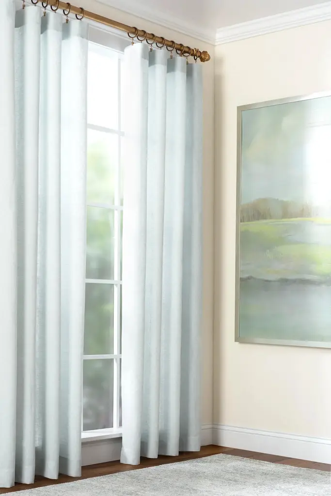With a masculine marled weave and a sophisticated texture and drape, these simple curtain panels have a reliably urban feel that can add understated elegance to any setting. Comes readily sewn with rod pocket and loops for easy installation or converts to ring-top style with curtain clip or curtain loop rings, available separately. Remember to order two sets of rings for wider-width panels.