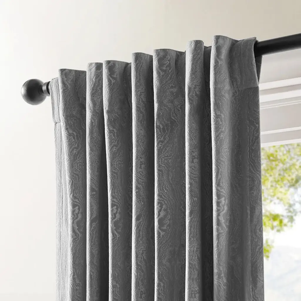 Elevate your interiors with the refined elegance of the Mabel Velvet Swirl Curtain in grey blue. Crafted from plush velvet and finished with a tonal swirl motif, this exclusive Z Gallerie design adds a layer of textural interest to your windows. The dual construction offers versatile hanging options, while the room-darkening quality filters light with poise.ZG Exclusive