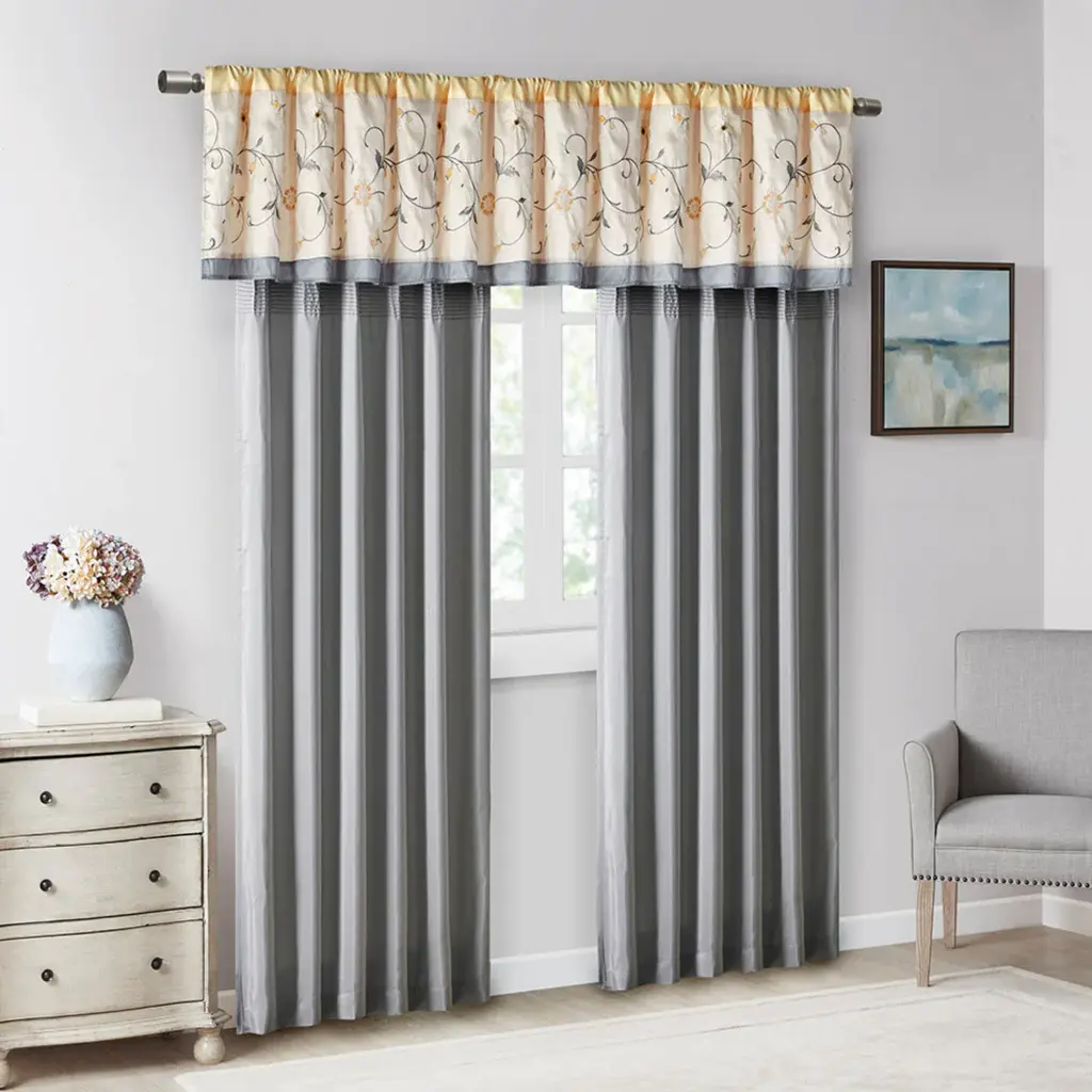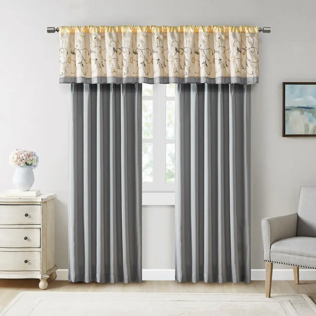 Madison Park Serene Embroidered Window Valance, Yellow