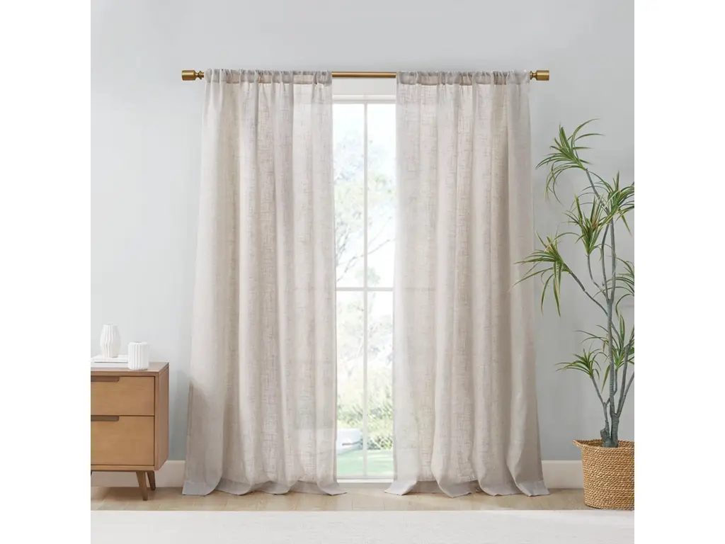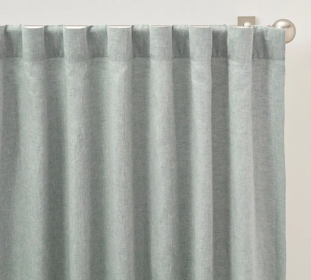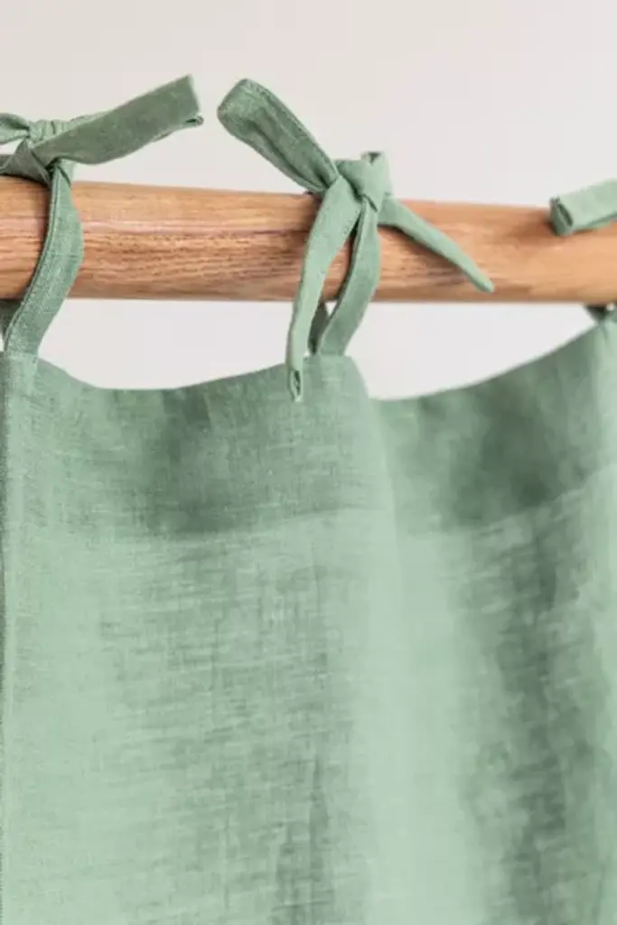 Linen curtain panel available in various colors. Soft, easy draping, semi-sheer linen curtains provide privacy while at the same time letting just enough daylight in to keep the room cheerful. Fitted with a tie top header for easy hanging. Note: Tie length is NOT included in the overall curtain length. Expect additional 2"/ 5 cm. \- Includes one curtain panel \- Made from 100% European flax \- Stone washed for maximum softness \- OEKO-TEX certified product (absent of harmful chemicals) \- Imported **Size** \- XXXS: 53x64" / 135x163cm \- XXS: 53x76" / 135x193cm \- XS: 53x84" / 135x213cm \- S: 53x90" / 135x229cm \- M: 53x96" / 135x244cm \- L: 53x108" / 135x275cm \- XL: 91x84" / 230x213cm