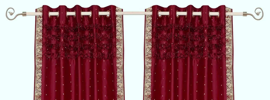 Maroon Hand Crafted Grommet Top Sheer Sari Curtain Panel -Piece