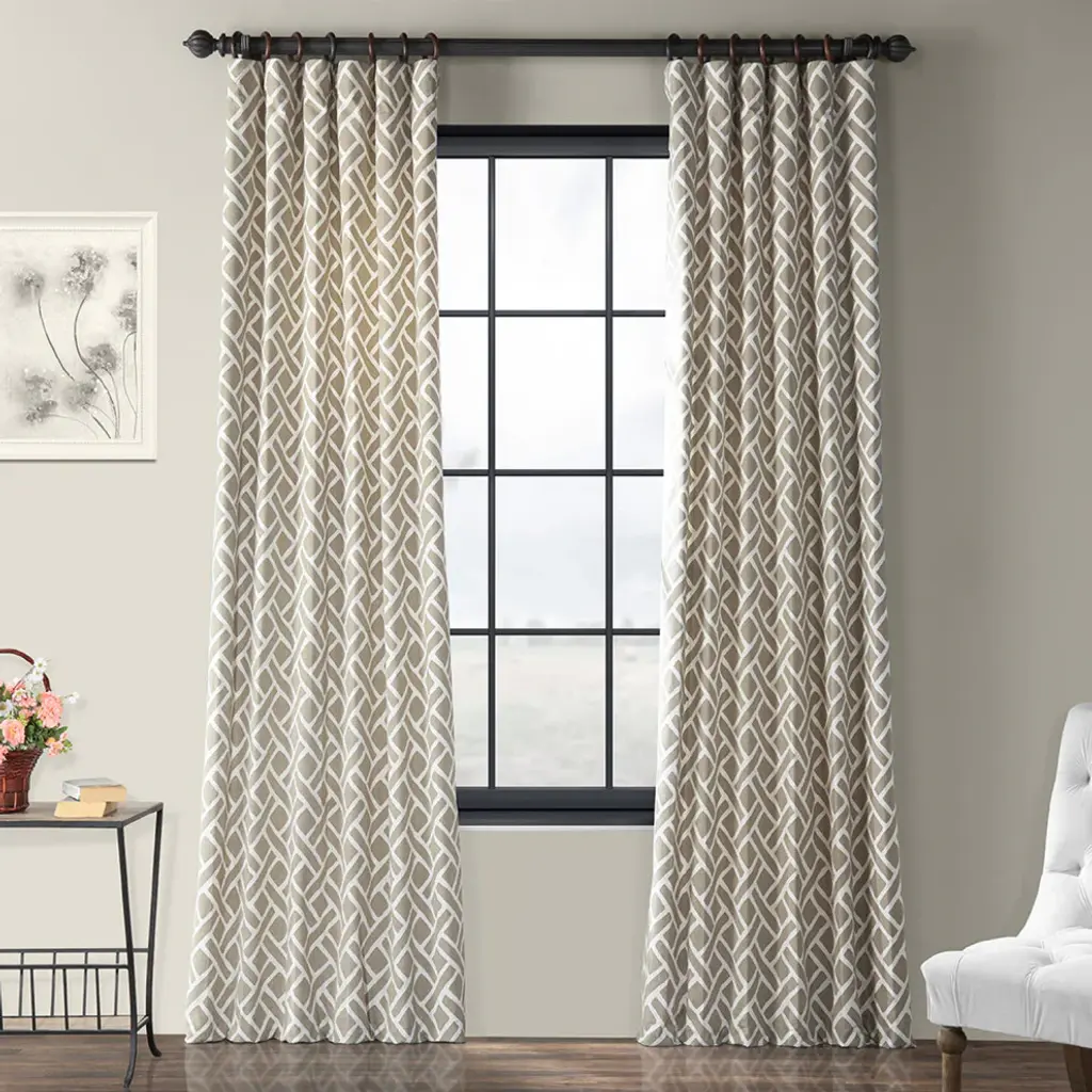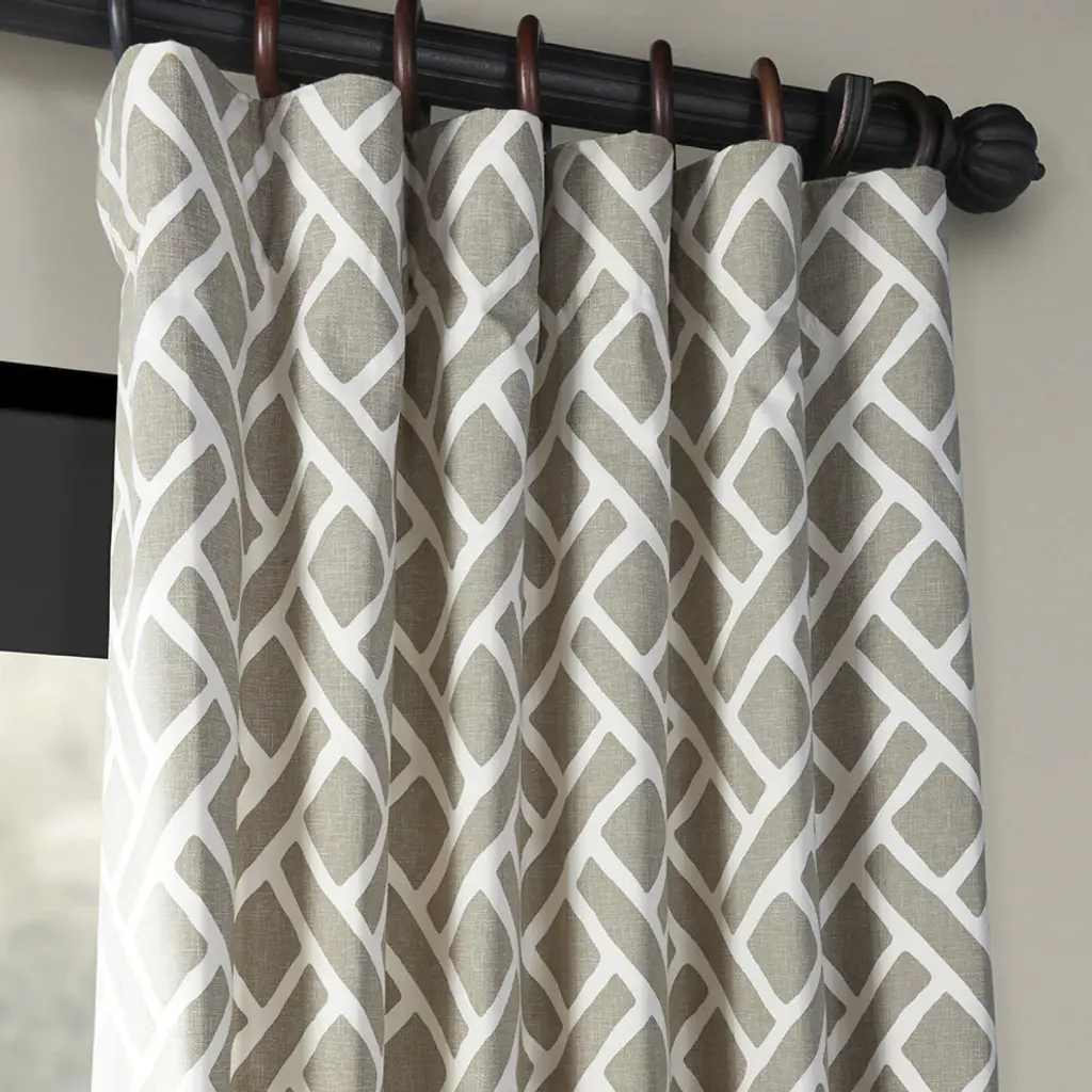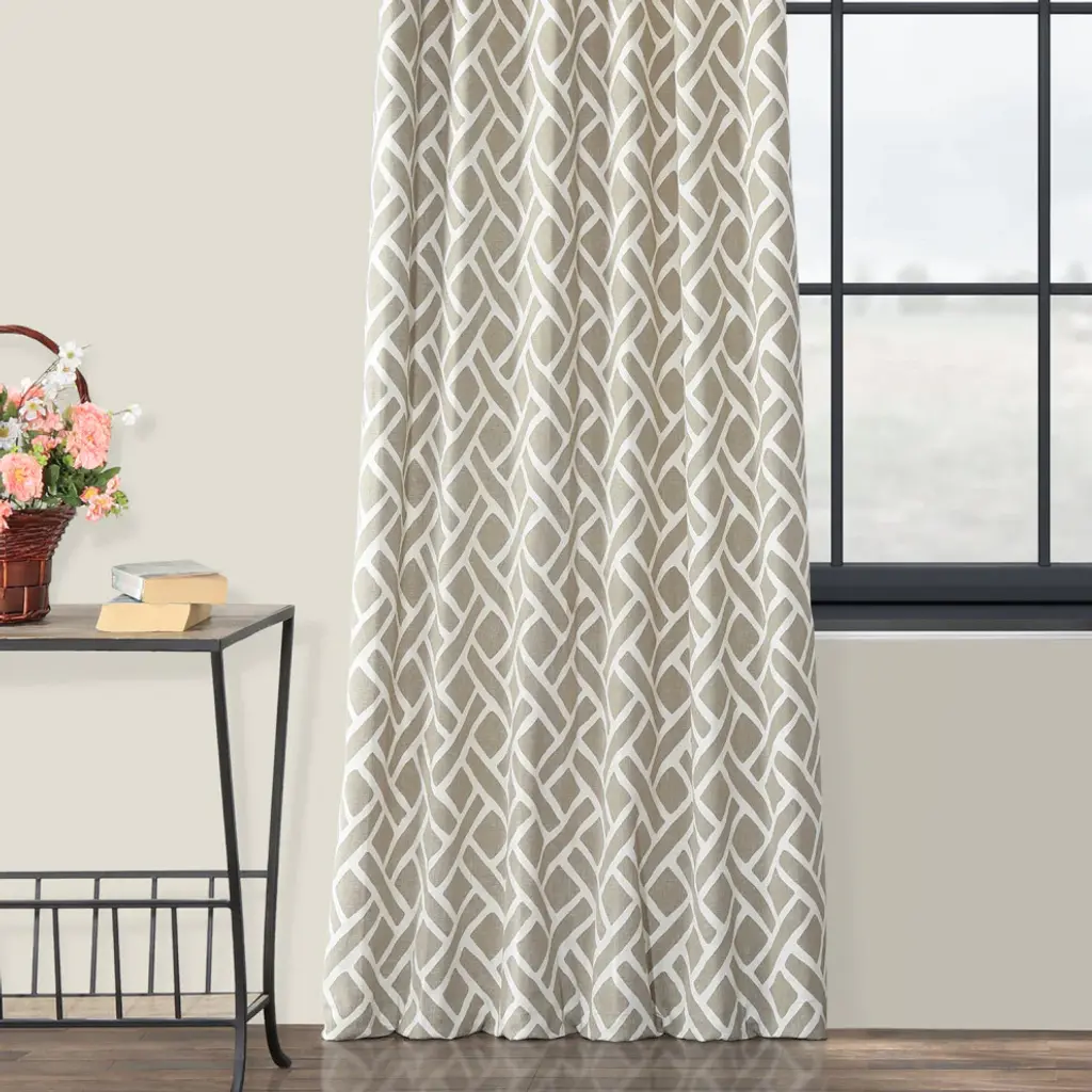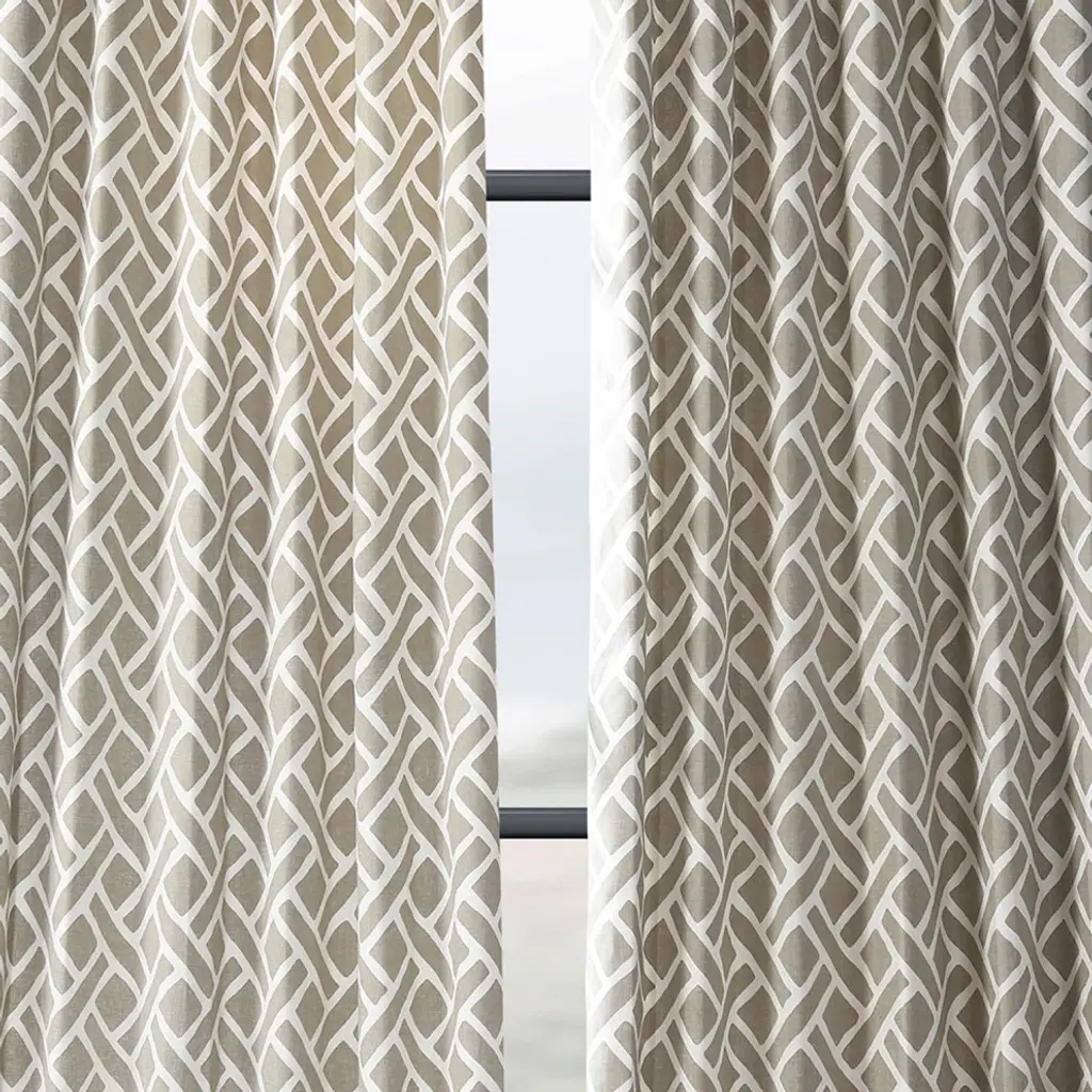 Martinique Taupe Printed Cotton Curtain Single Panel, 50"x120"