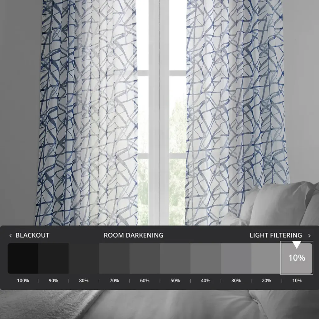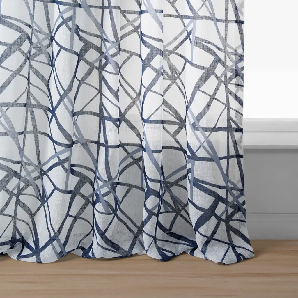 Matrix Printed Sheer Curtain Single Panel, Blue, 50"x96"