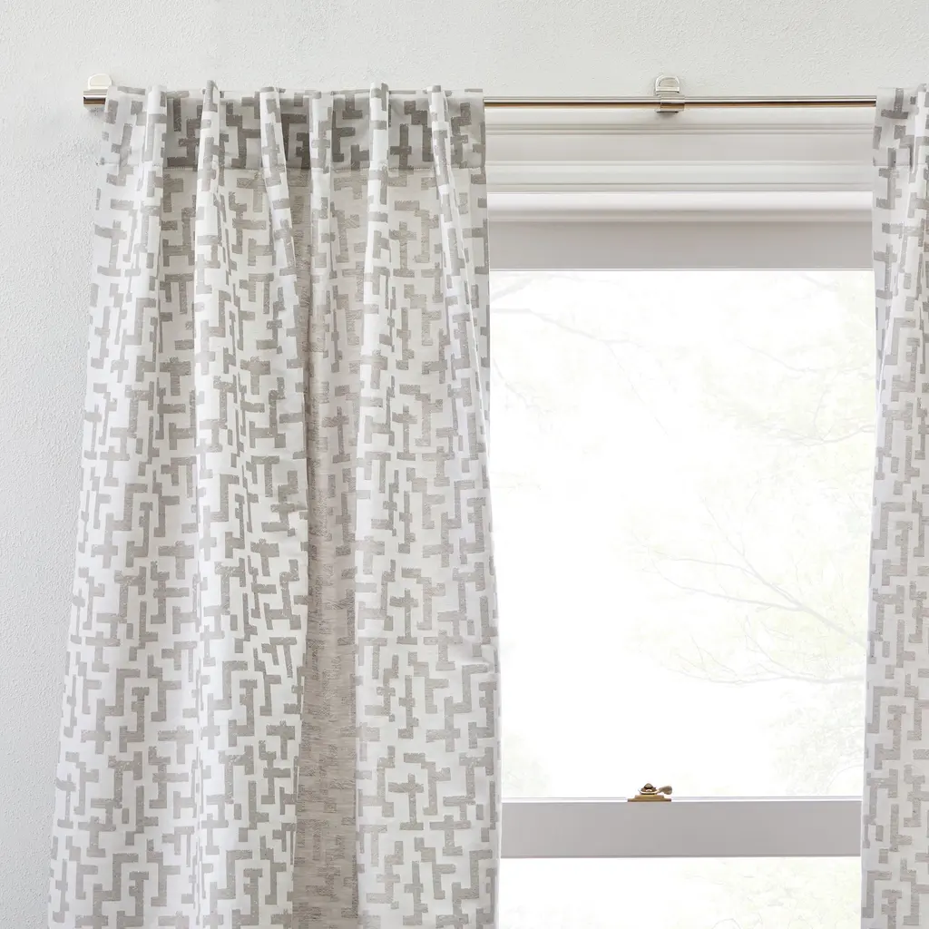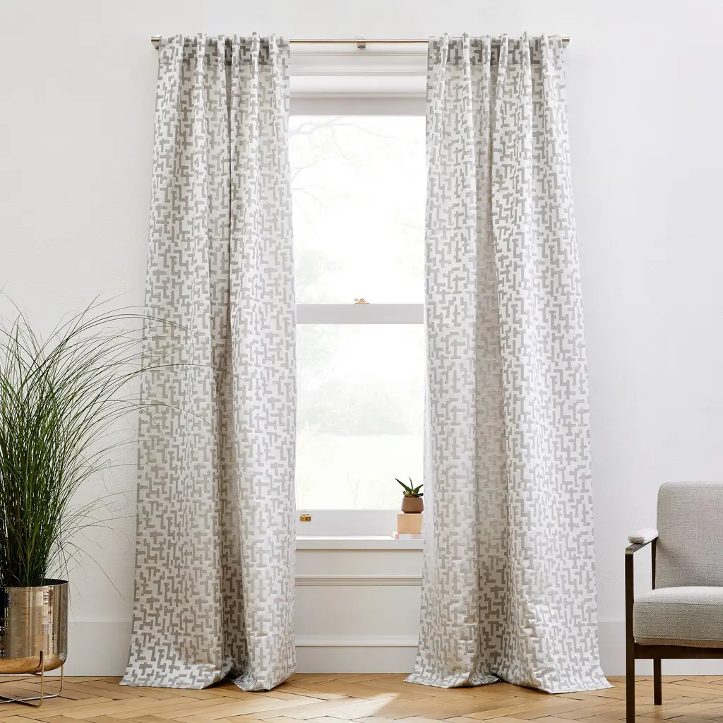 The linear geometric pattern of our Maze Jacquard Curtain merges texture and dimension, transforming your window into a labyrinth of style. Its thick linen blend fabric helps to reduce sound and darken rooms.