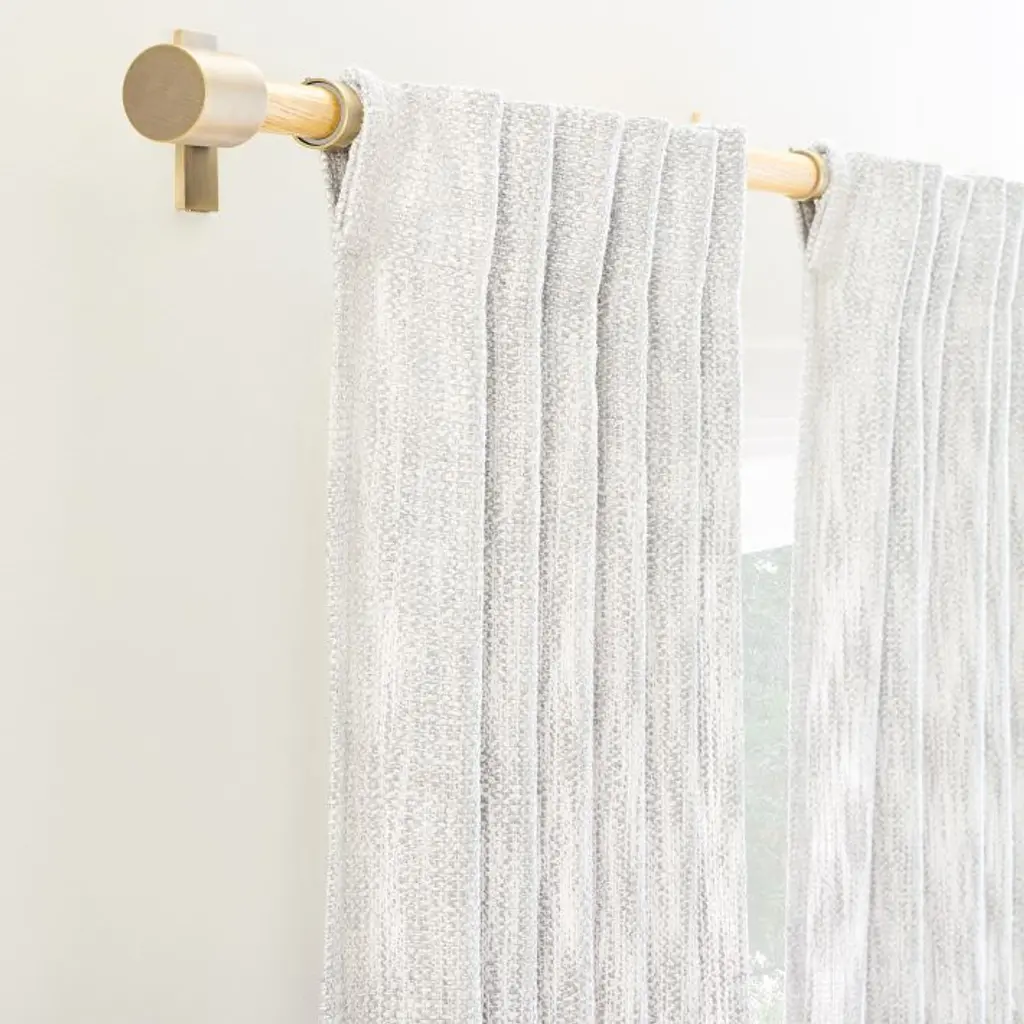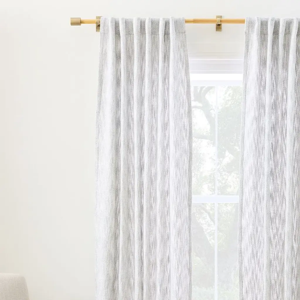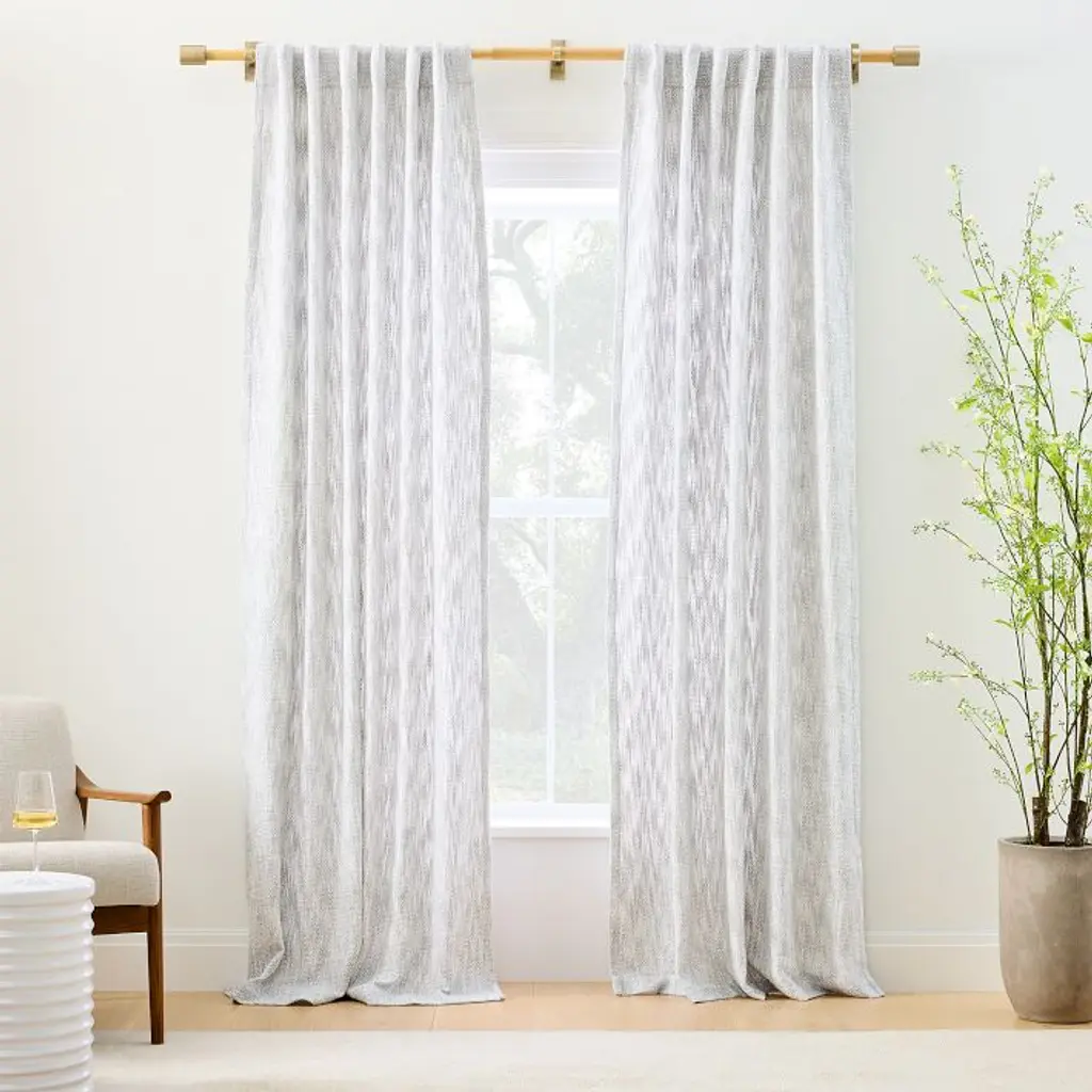 100% cotton in Ash. By choosing our cotton products, you’re supporting our investment in Better Cotton’s mission. This product is sourced via mass balance and therefore may not contain Better Cotton. Learn more. Opaque fabric blocks most light and helps insulate windows. Various lengths, all sizes 48"w. Pole pocket diameter: 4.25". 2-in-1 construction with dual hanging options: rod pocket (bunched) or back tabs (pleated). Cotton lining. Coordinates with West Elm’s window hardware (sold separately). Imagery reflects opacity of curtain when exposed to direct sunlight. Made in China.