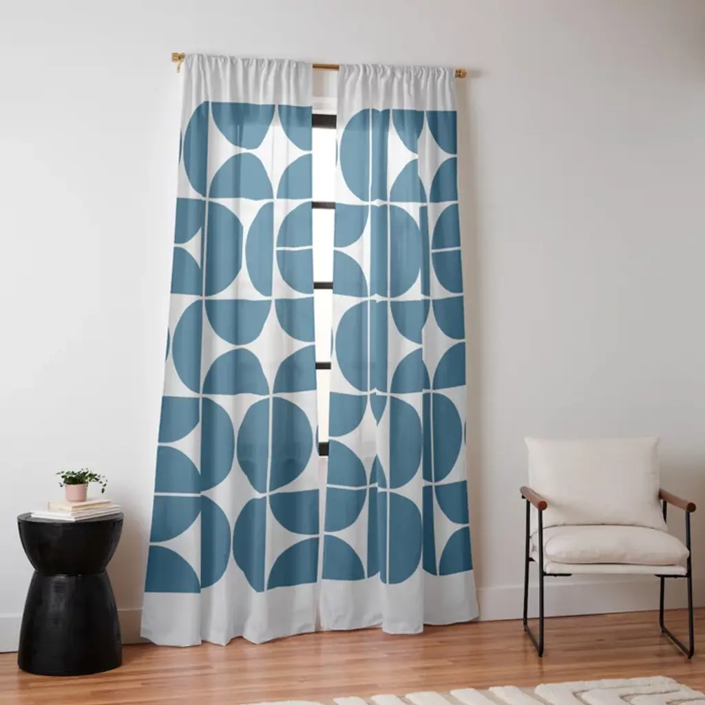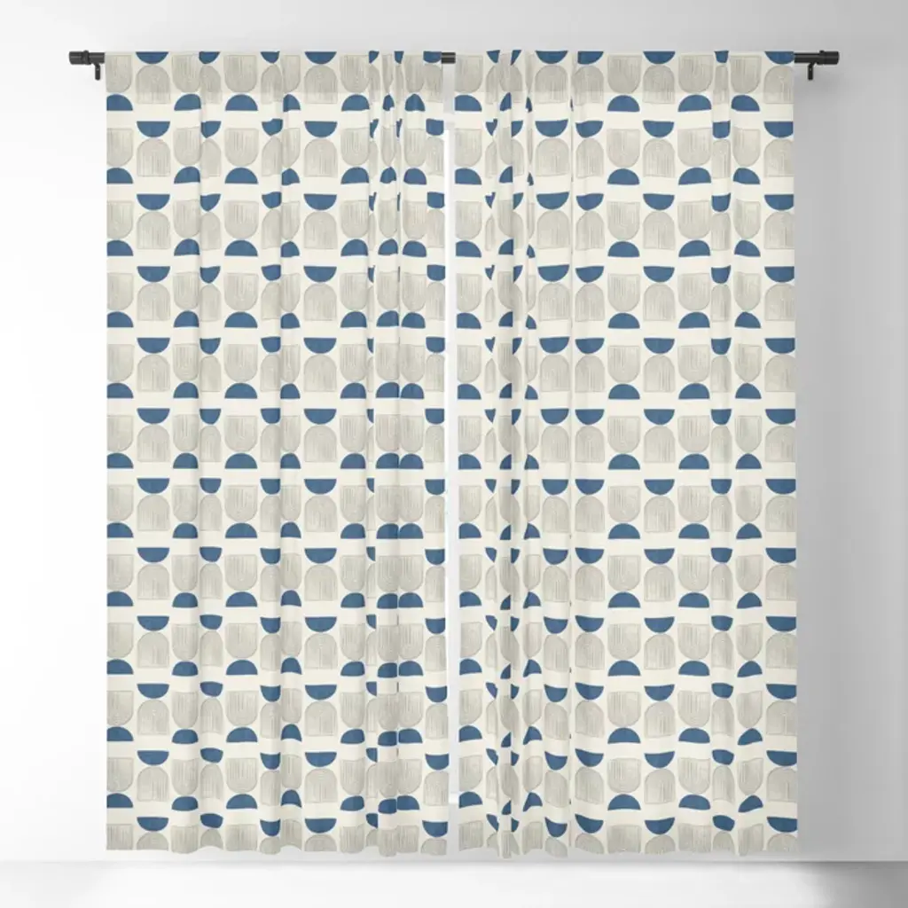 Mid Century Modern Geometric Half Oval Pattern 248 Navy Blue Curtain