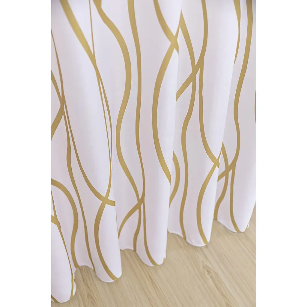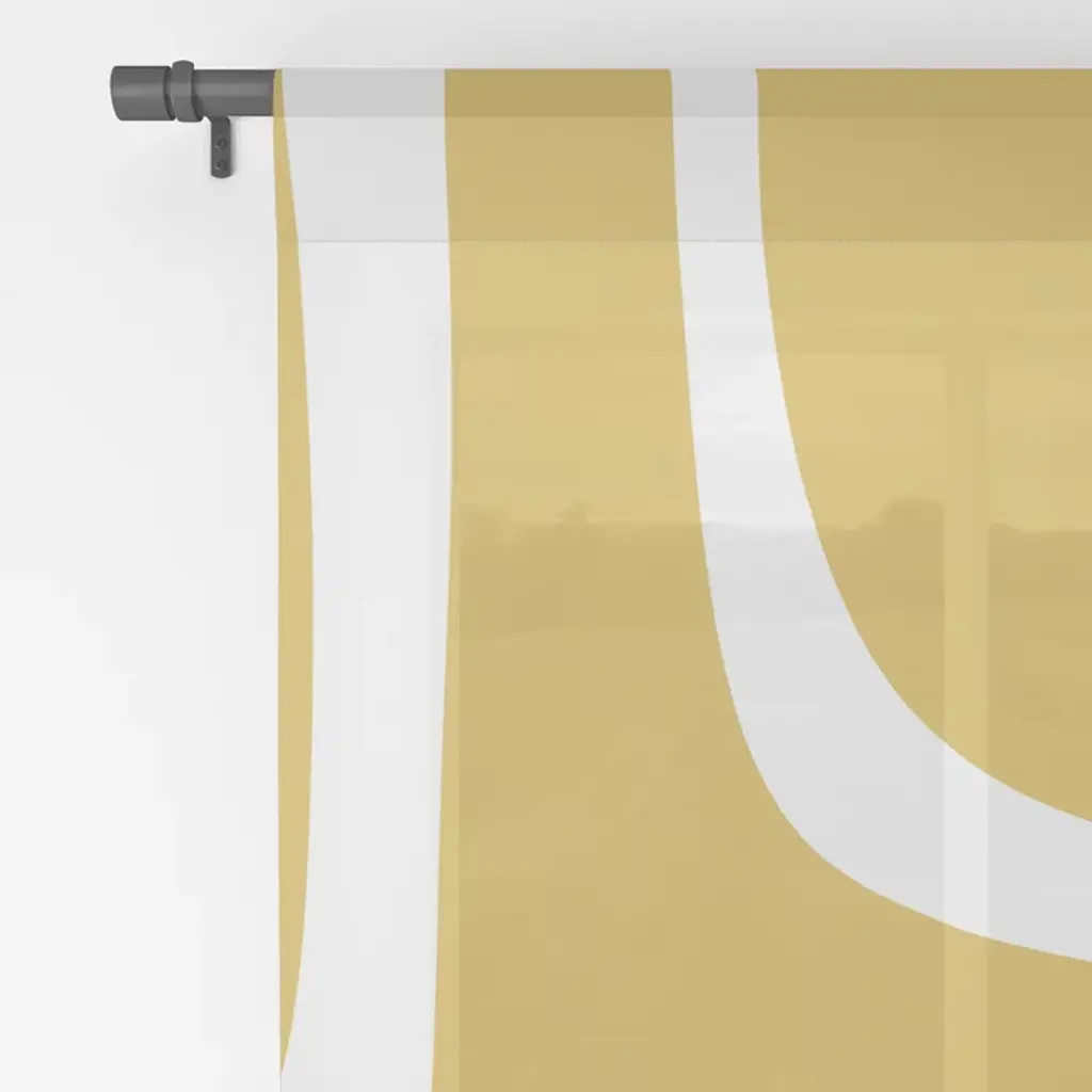 Midcentury Modern Loops Pattern In White And Light Mustard Curtain