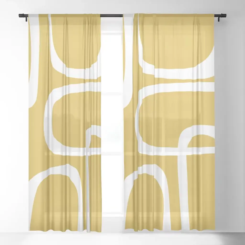 Midcentury Modern Loops Pattern In White And Light Mustard Curtain