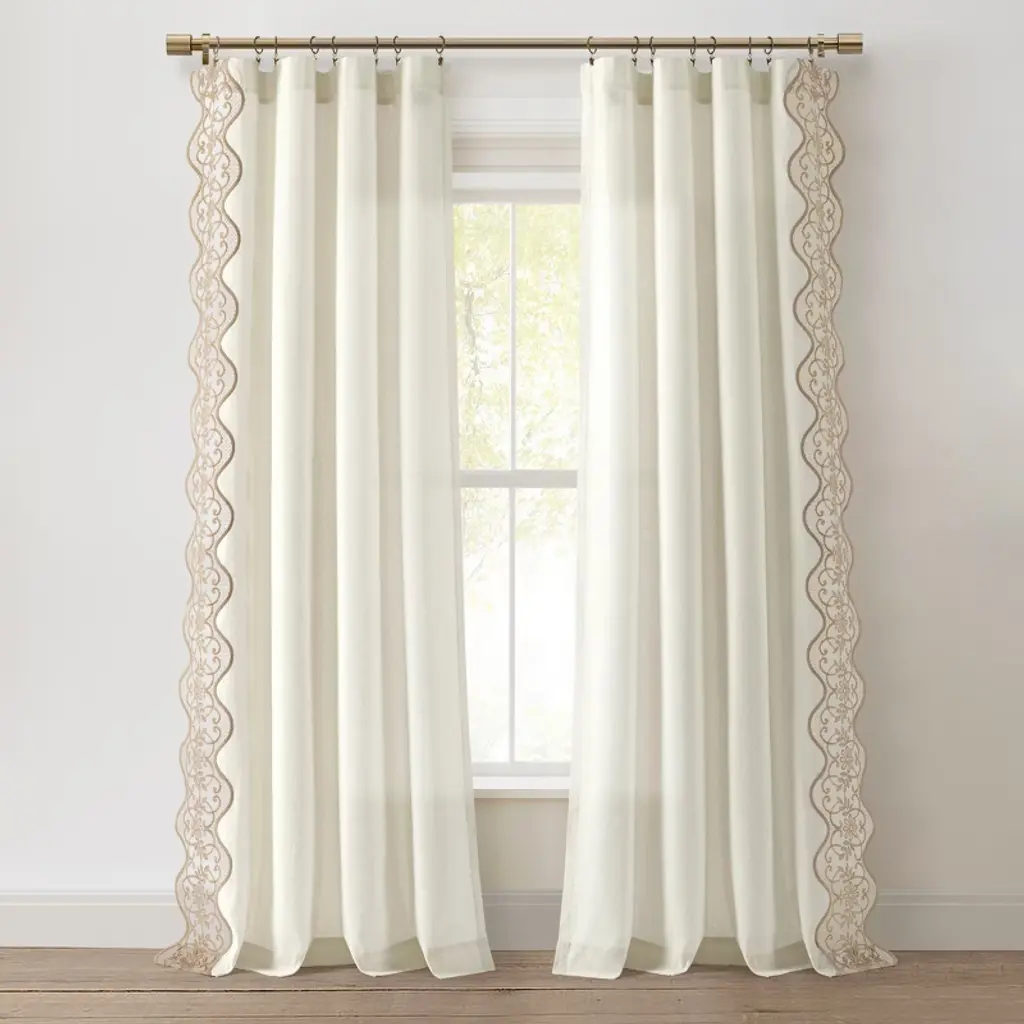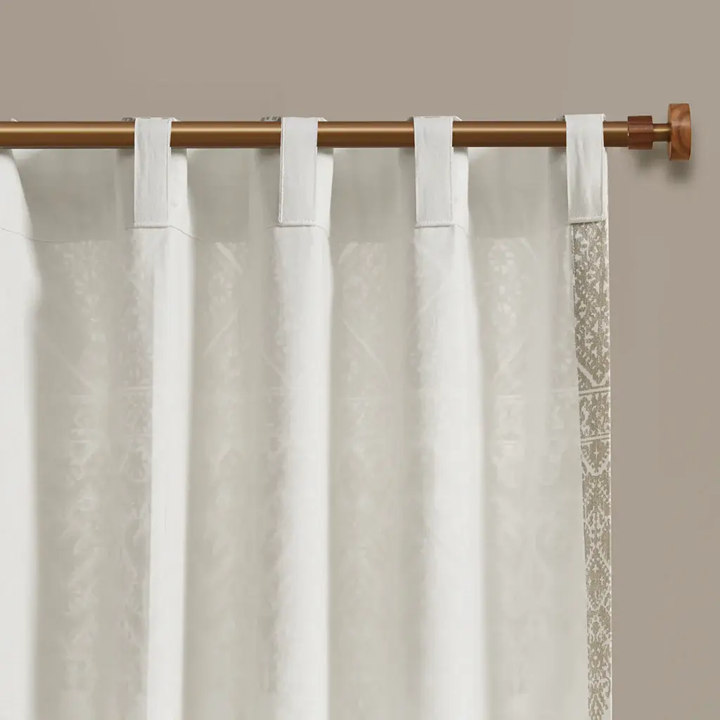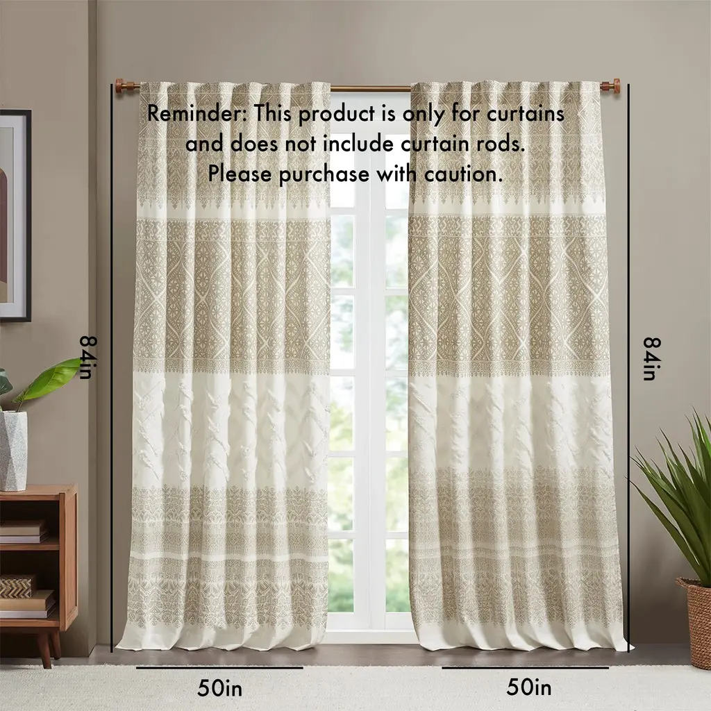 Description The INK+IVY Mila Cotton Printed Window Panel with Chenille Detail and Lining gives your home decor a chic boho touch. This natural white cotton window panel features an intricate global inspired print combined with rich tufted chenille detailing, for a textured artisanal look and feel. A lightweight white cotton lining on the reverse softly filters light, while providing better drapability and added privacy. In addtition, this 100% cotton curtain panel is also OEKO-TEX certified, meaning it does not contain any harmful substances or chemicals for the best in quality comfort and wellness. Each panel is finished with a rod pocket top for easy hanging, and back tabs for a more clean and tailored finish. This window panel is sold as a single and 2 window panels must be purchased to cover any standard size window. Complete the look with coordinating bedding sets, available and sold separately. Product Details 50x84" 1 Window Panel:50"W x 84"L Material 100% cotton, printed and tufted with chenille, with cotton lining on the back. Finished with rod pockets and back tabs; fits up to 1.25 inches diameter rod.