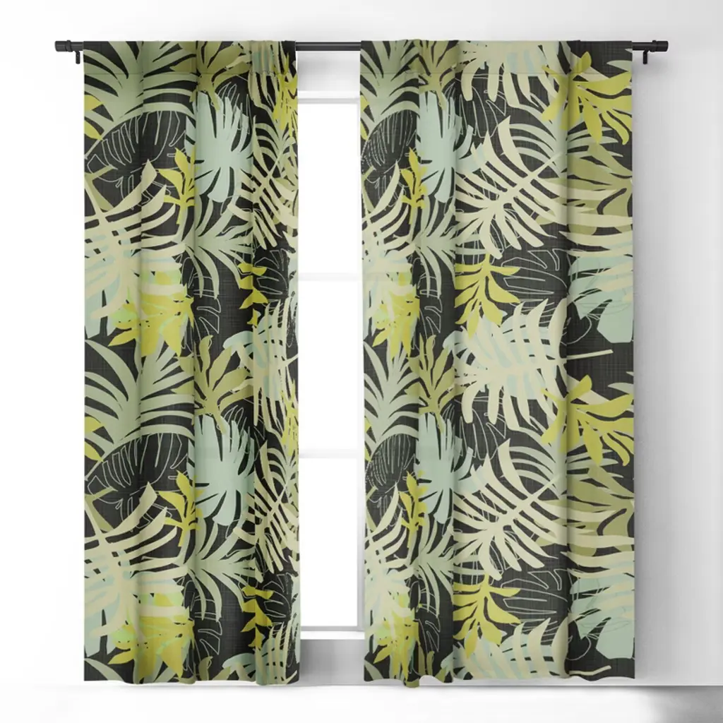 Mirimo Tropical Green Foliage 50" X 108" Set Of 2 Panel Room Darkening Window Curtain - Deny Designs